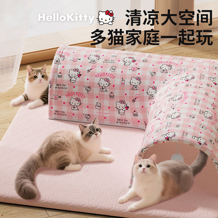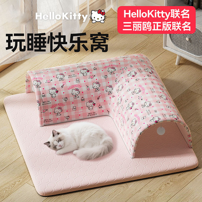 春夏季貓咪大耳狗聯名雙開隧道牆角貓窩玩睡一體滾地籠涼感寵物窩