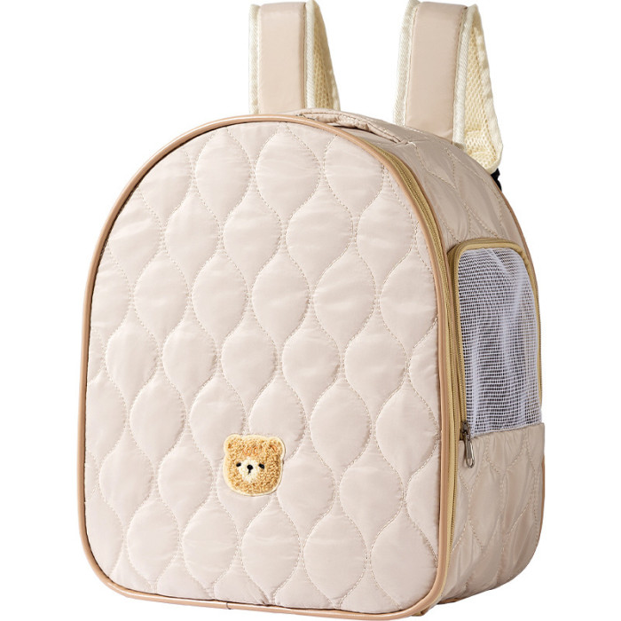 秋冬季大容量外出貓包透氣簡約狗狗後背包菱格小熊雙肩包寵物包用品