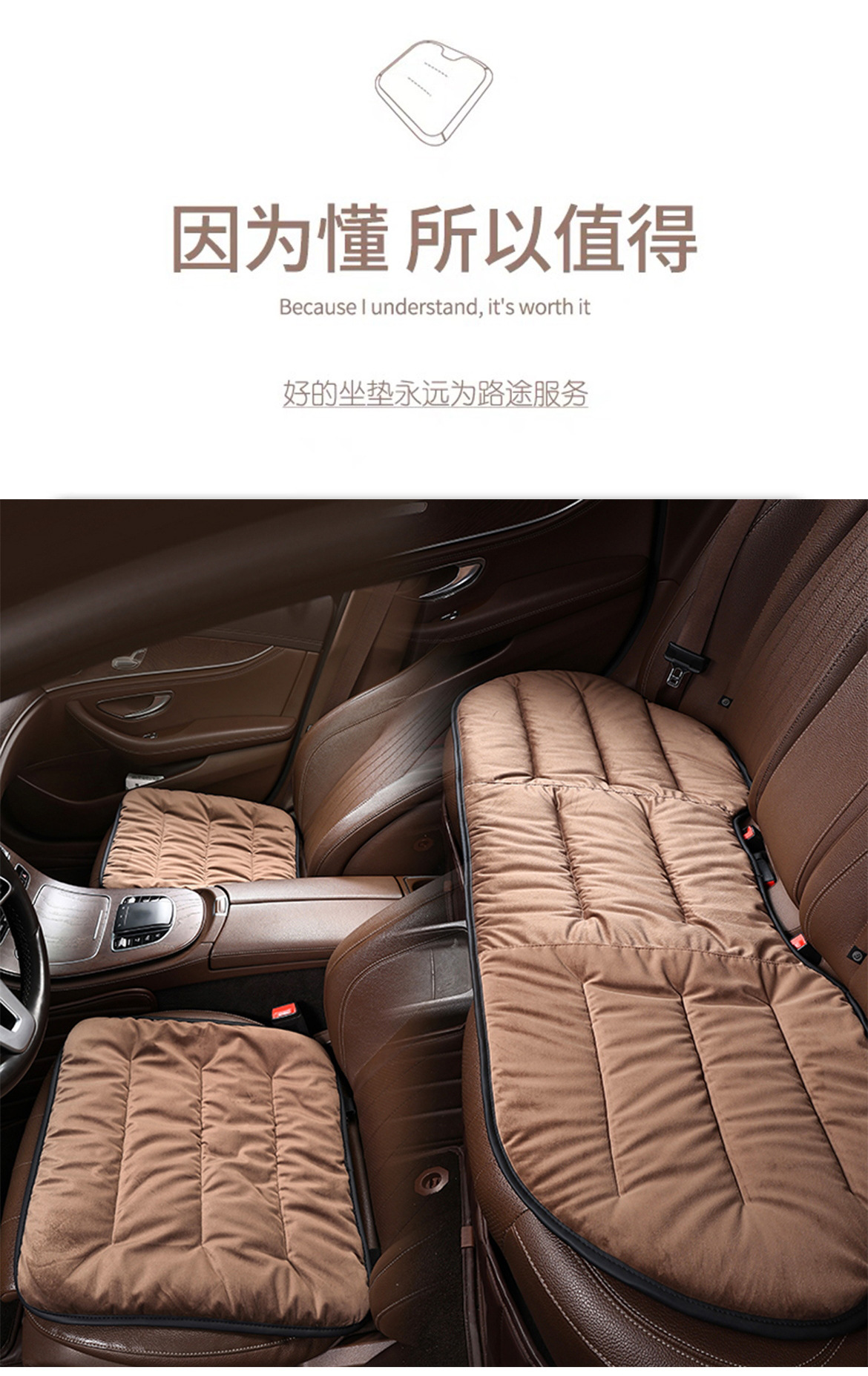 羢布款【前座1張+靠墊1張】咖啡色