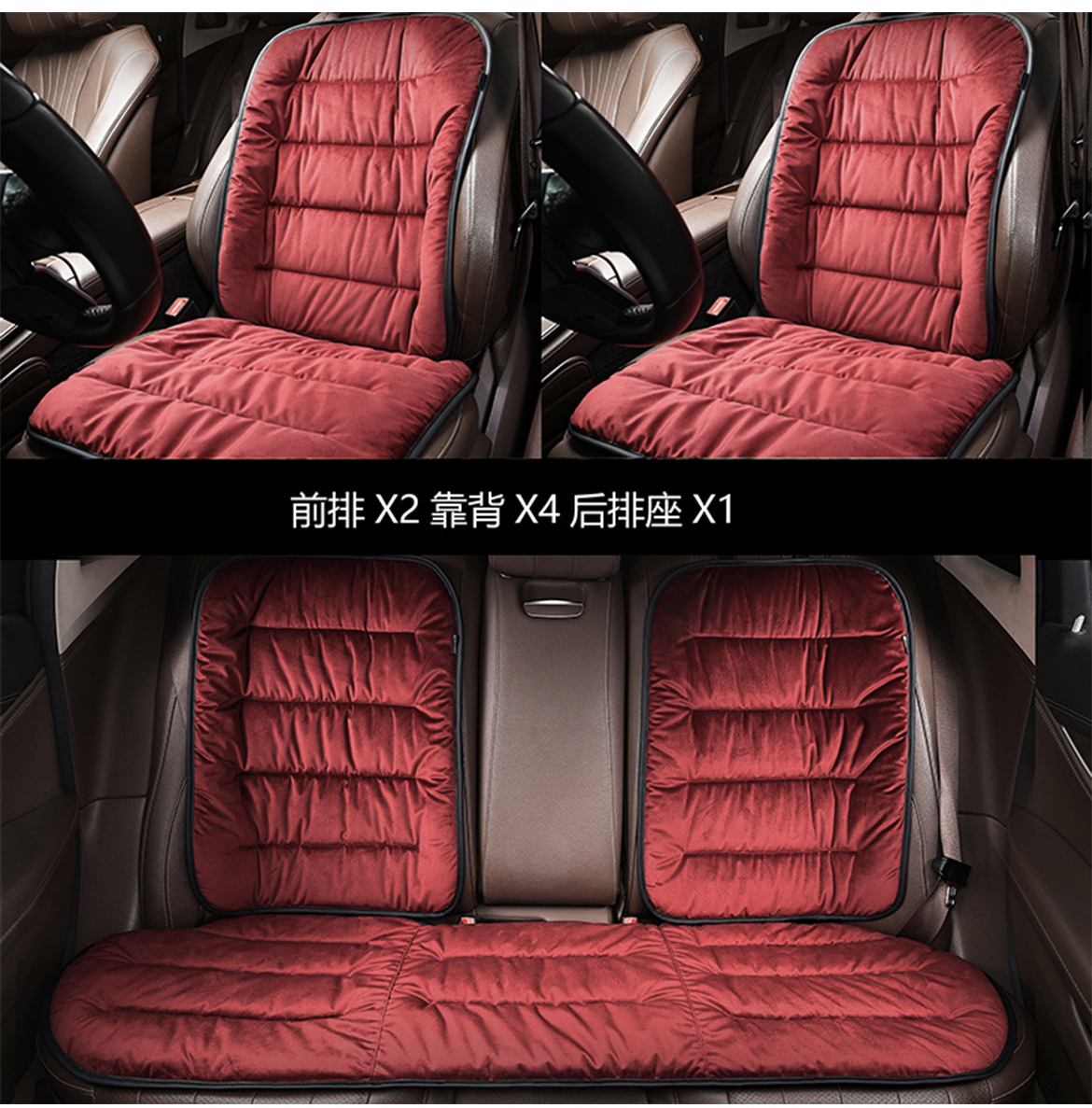 羢布款【七件套前座2張+後座1張+靠墊4張】酒紅色