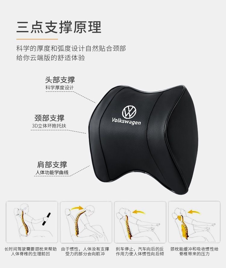 汽車頭枕記憶棉護頸枕全皮汽車腰靠速騰邁騰途觀L帕薩特寶來