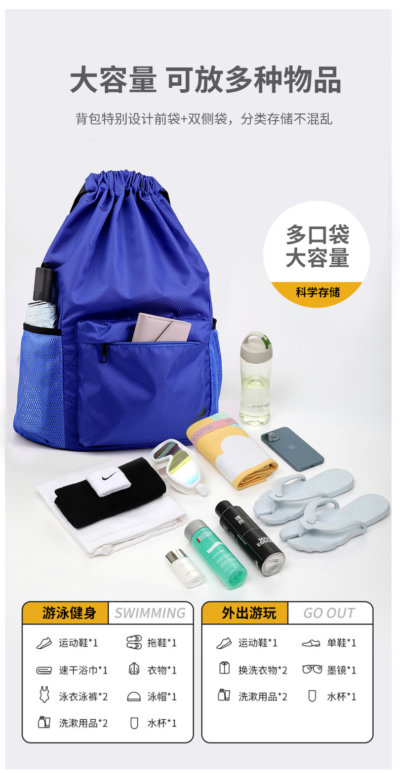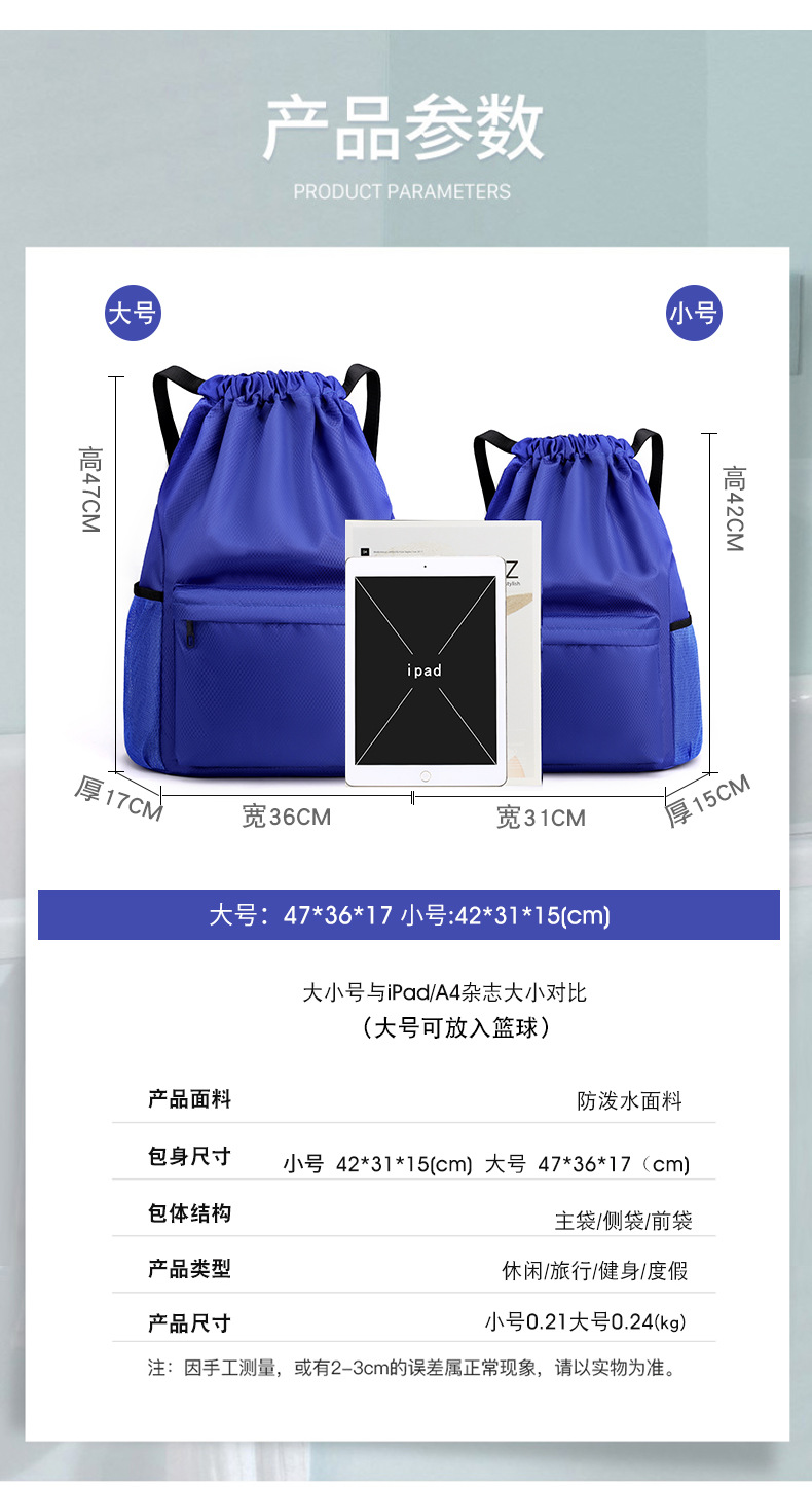 束口袋抽繩雙肩包乾溼分離大容量旅行可攜式雙肩書包男運動籃球收納
