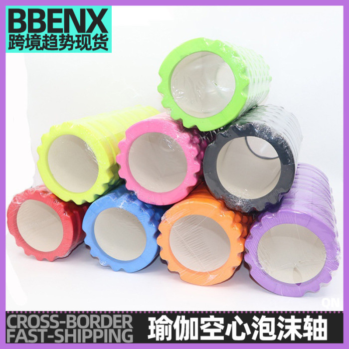 33cm空心狼牙形瑜珈柱空心泡沫軸EVA肌肉放松 瑜珈腿部按摩狼牙棒