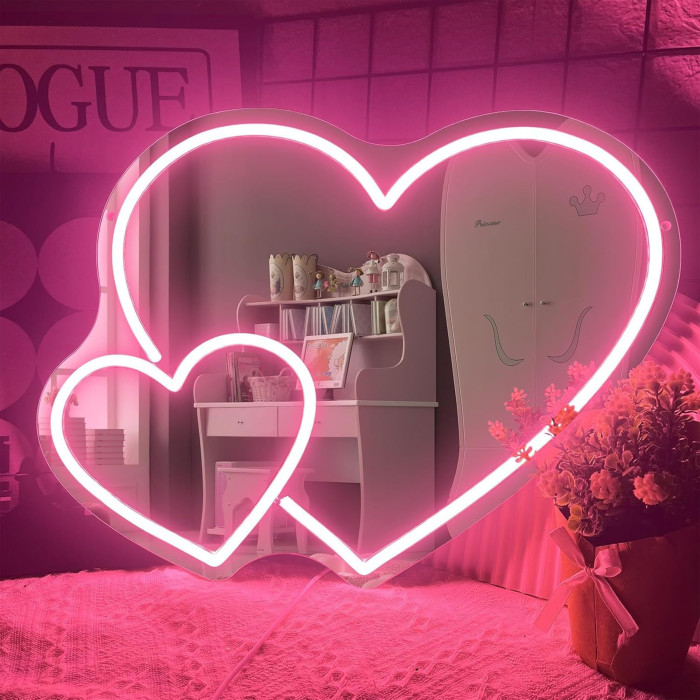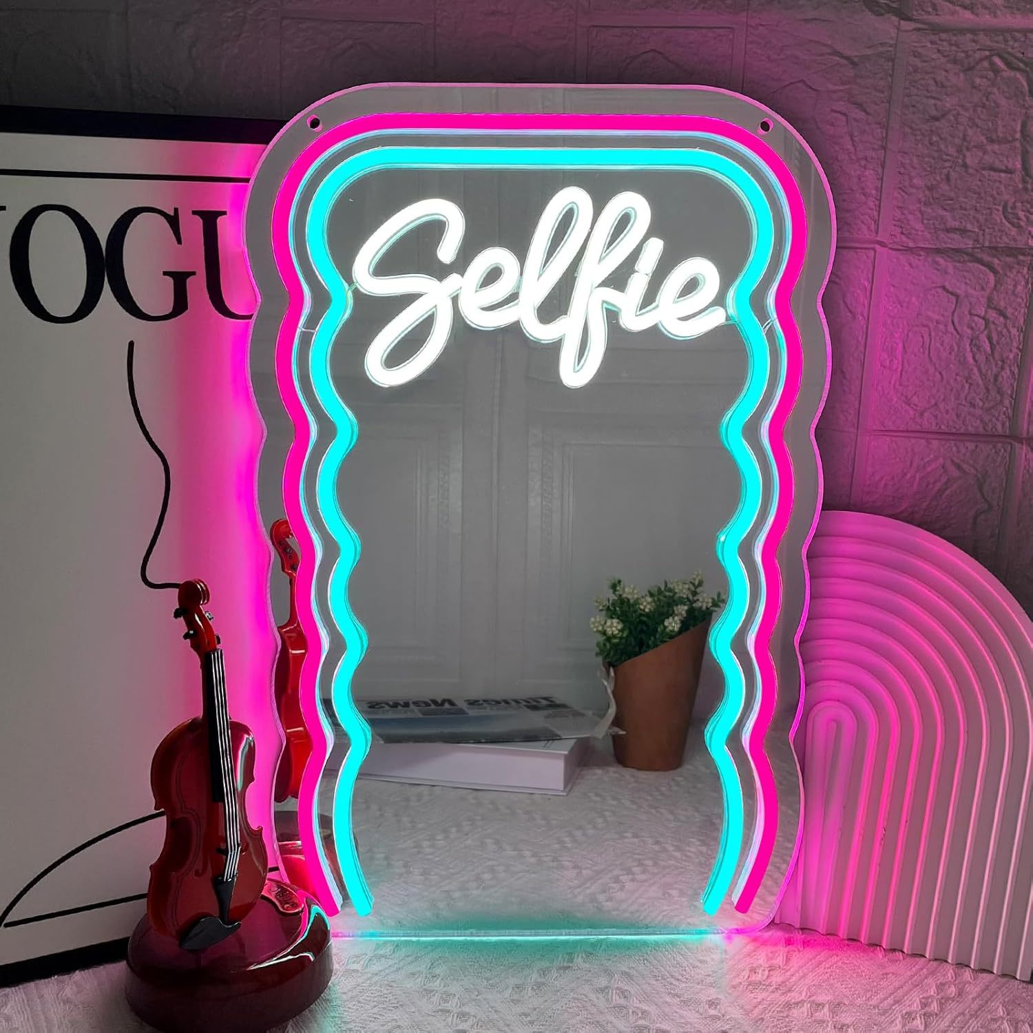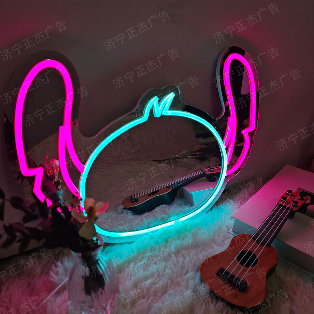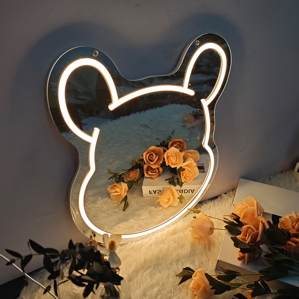 波浪鏡面霓虹燈小熊化妝鏡卡通動漫臥室浴室亞克力鏡子燈