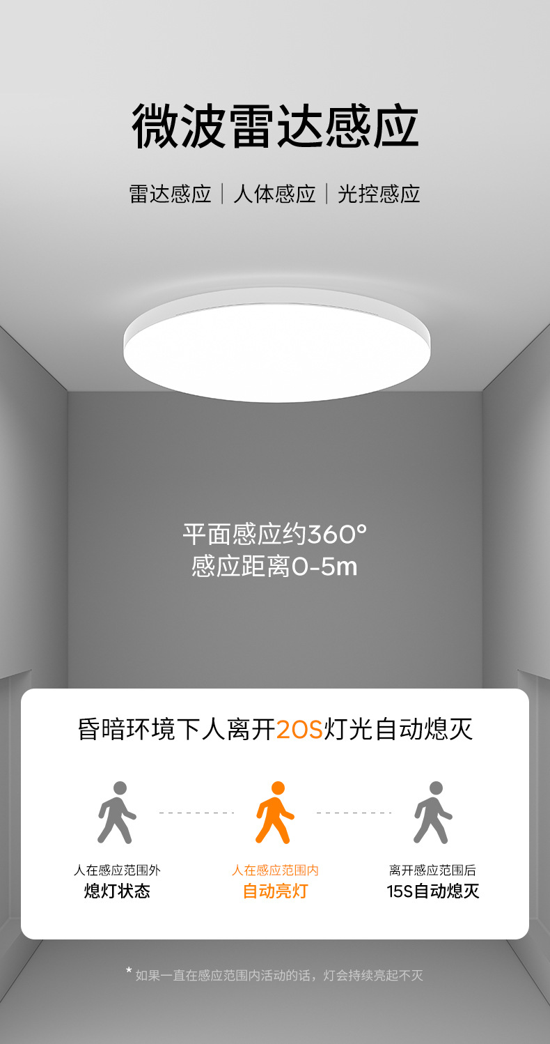 led感應吸頂燈聲控樓道樓梯過道家用入戶 走廊自動雷達人體感應燈