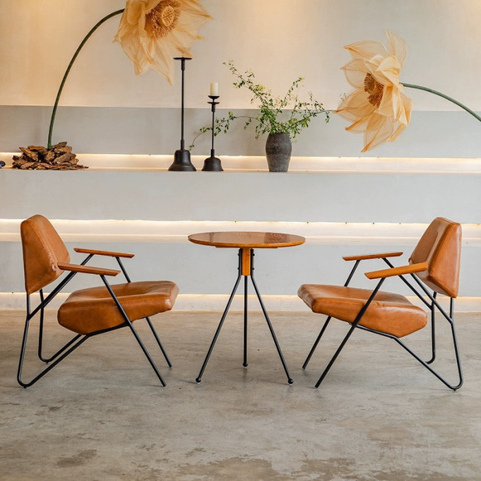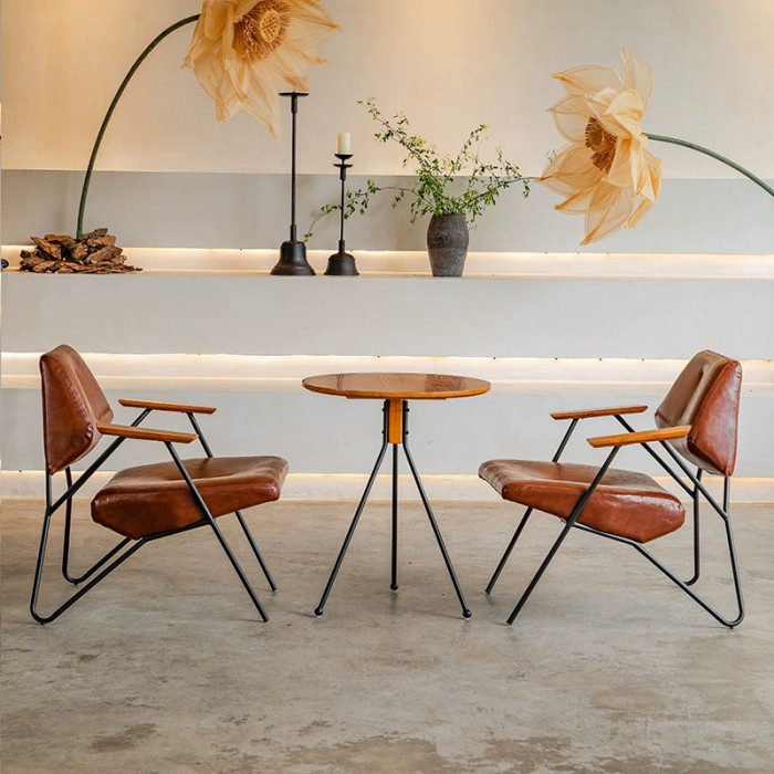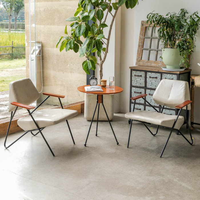 兩椅一桌【耐磨油蠟皮】咖啡色