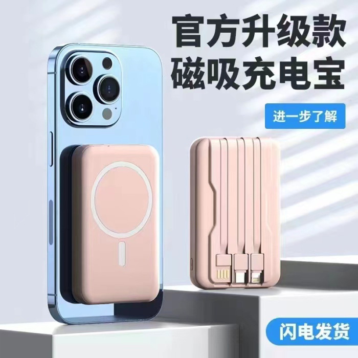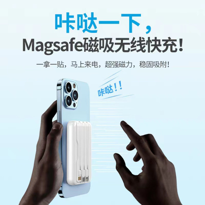 無線充磁吸充電寶magsafe自帶線快充輕薄10000安培手機行動電源