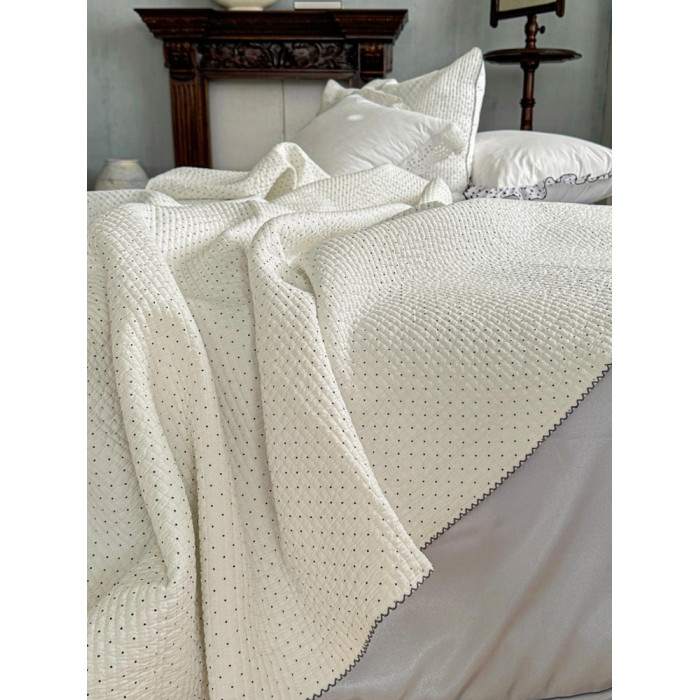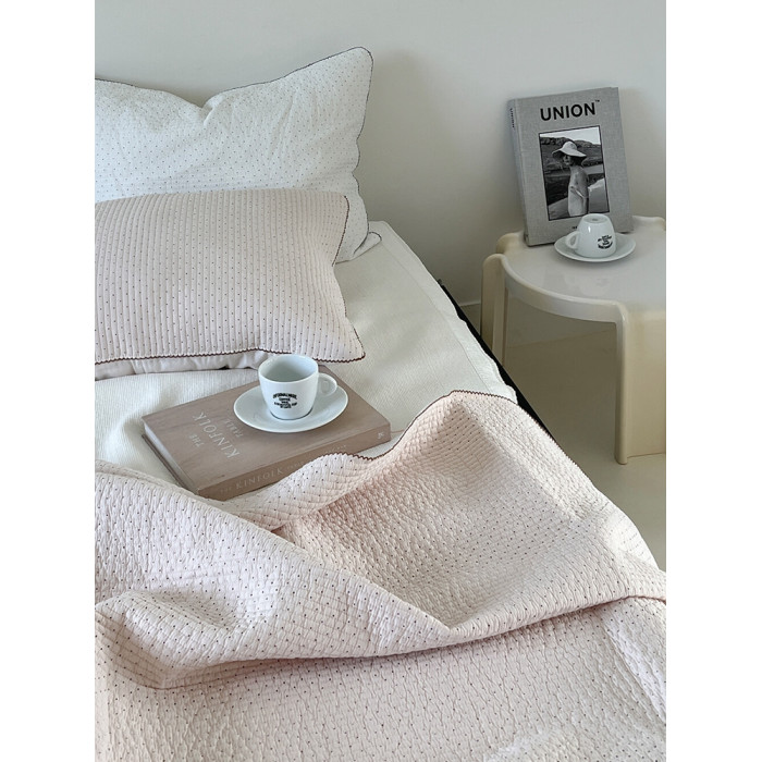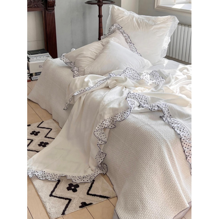 可愛黑色波點純棉絎縫柔軟床單韓國進口雙人四季通用圓點床蓋臥室