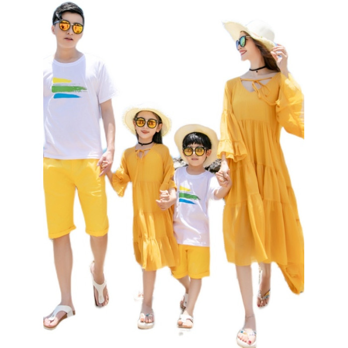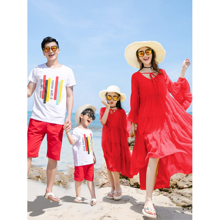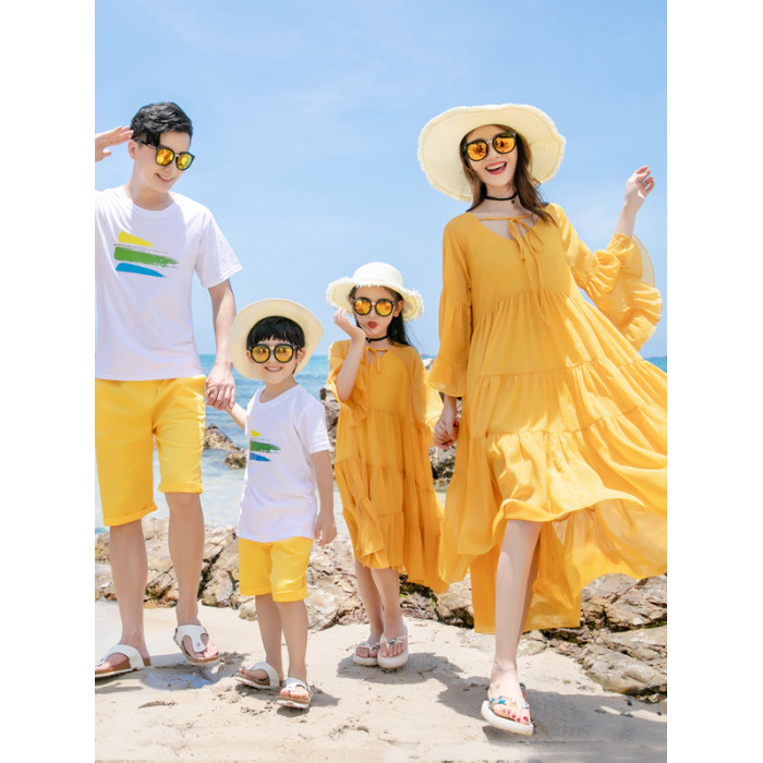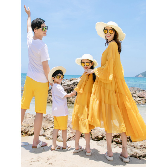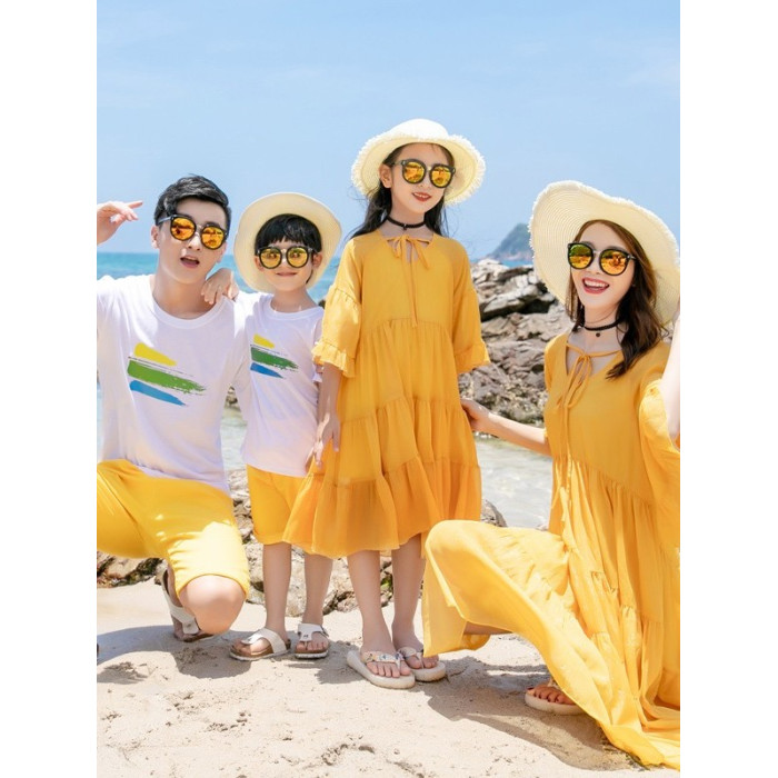 三亞馬代雲南旅遊親子裝沙漠草原雪紡連衣裙母女裙沙灘裙一家三口