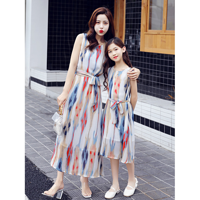 沙灘裙親子裝夏裝2025新款時尚母女裝洋氣網紅雪紡連衣裙海邊度假