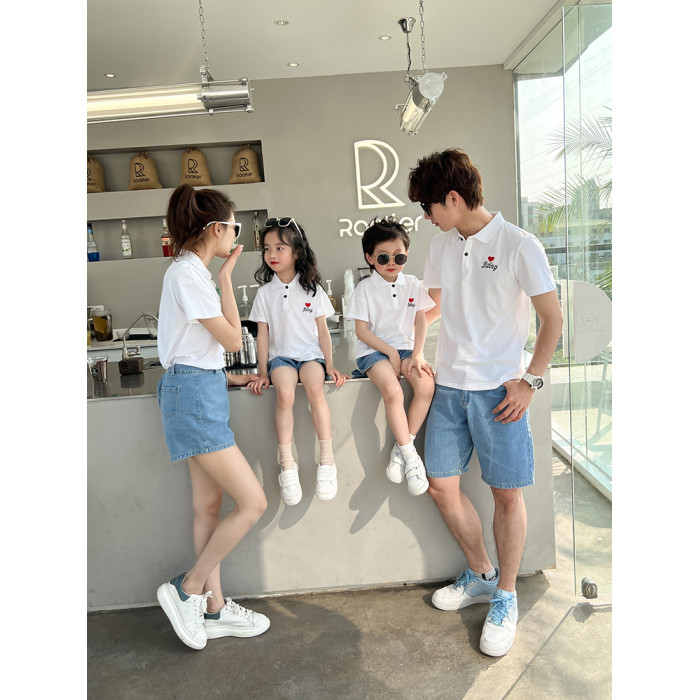 親子裝夏裝網紅一家三口母女裝洋氣四口短袖Polo高級套裝夏季母子