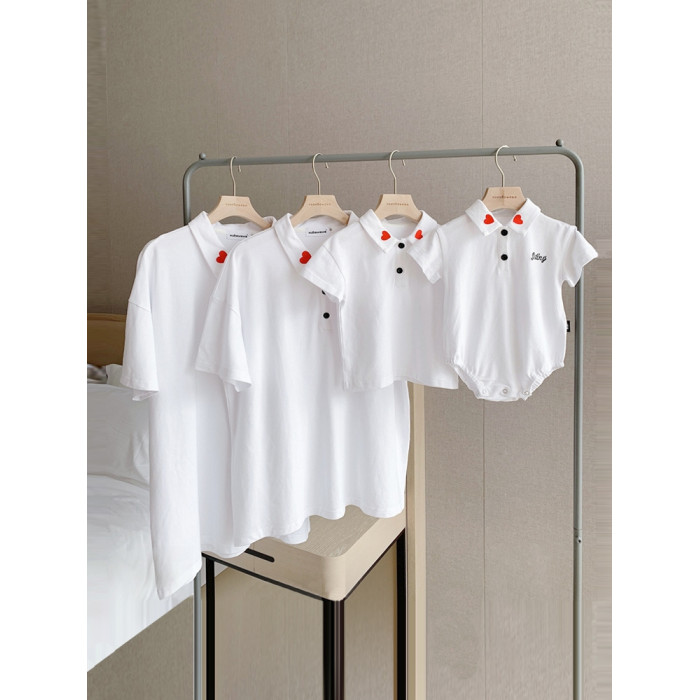 親子裝夏裝新款2025一家三口四口polo母女裝六一出遊拍照全家t恤