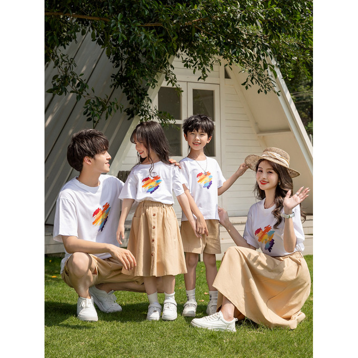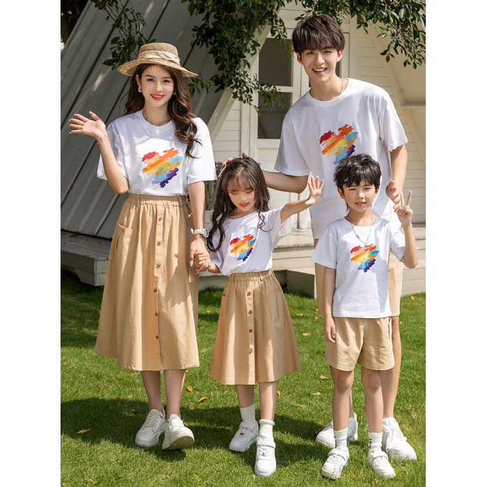 親子裝夏2025新款一家三口四口夏季純棉母子母女t恤短袖套裝家庭