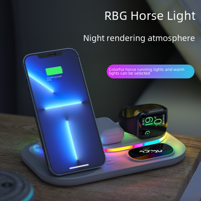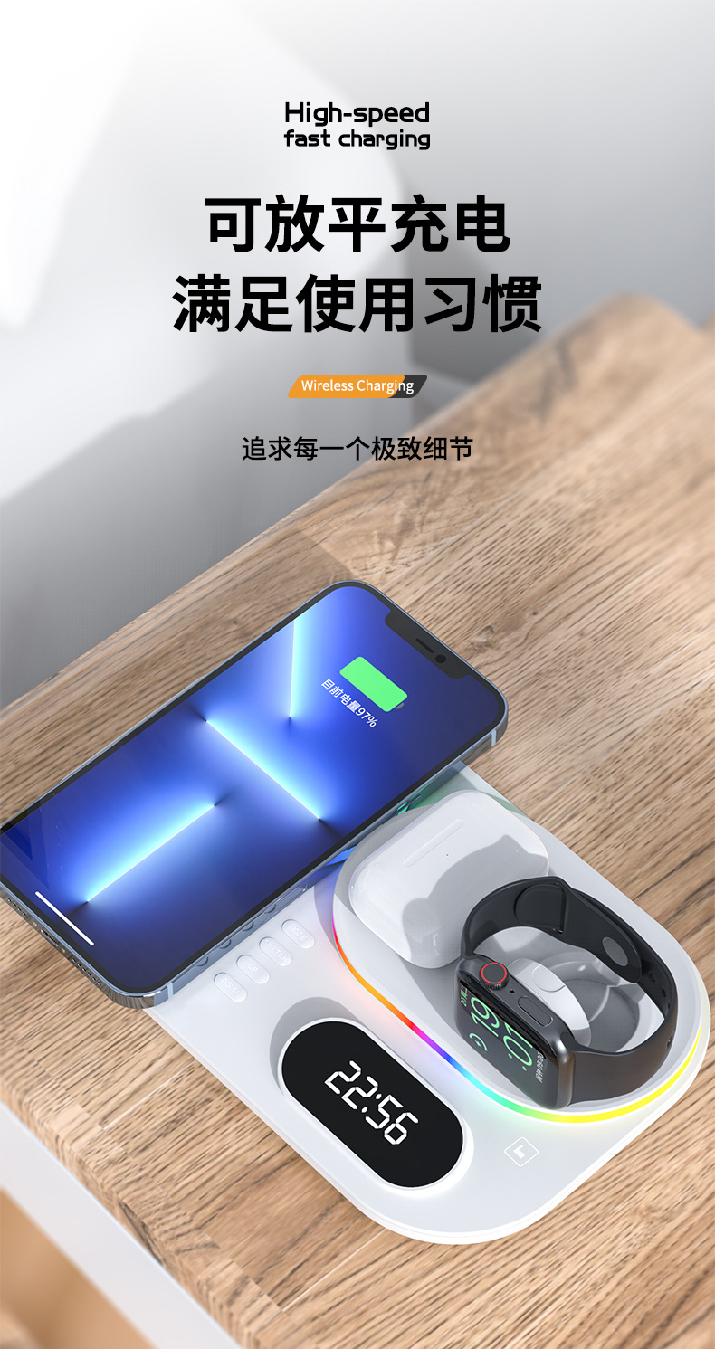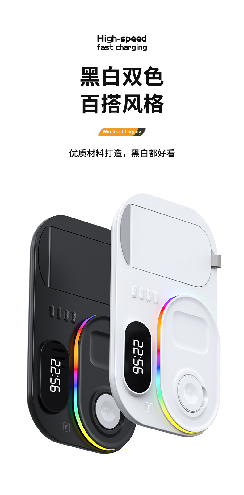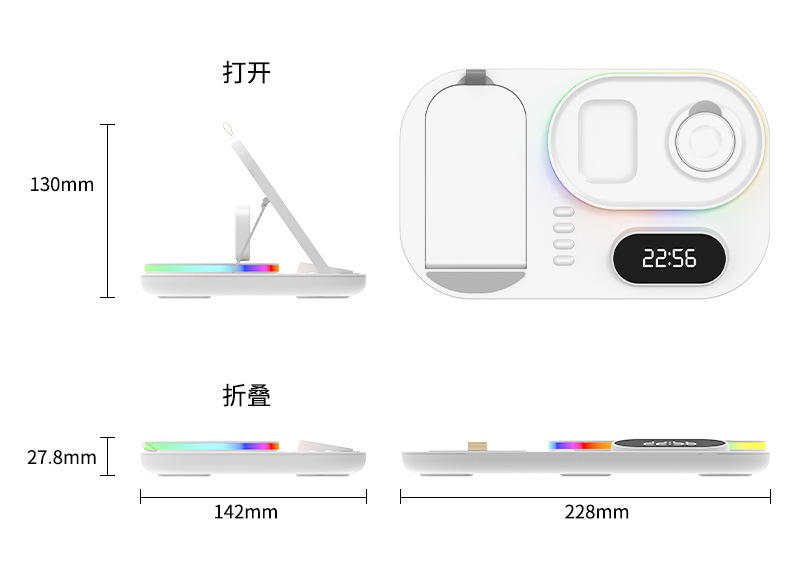 四合一無線充電器MagSafe數顯時鍾磁吸無線充30W快充立式折曡支架