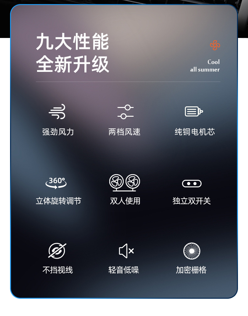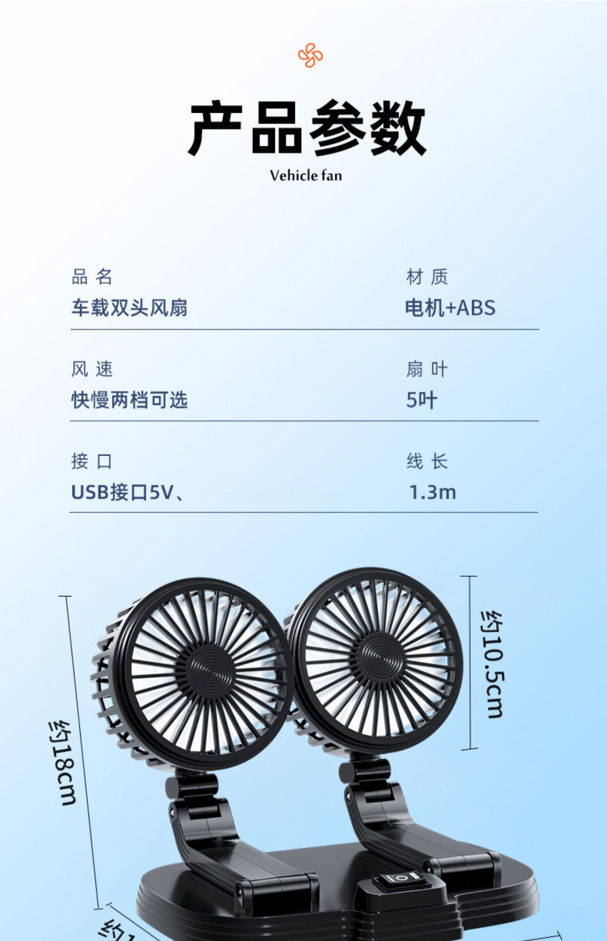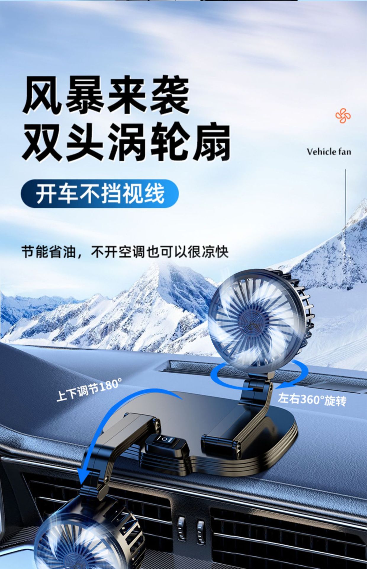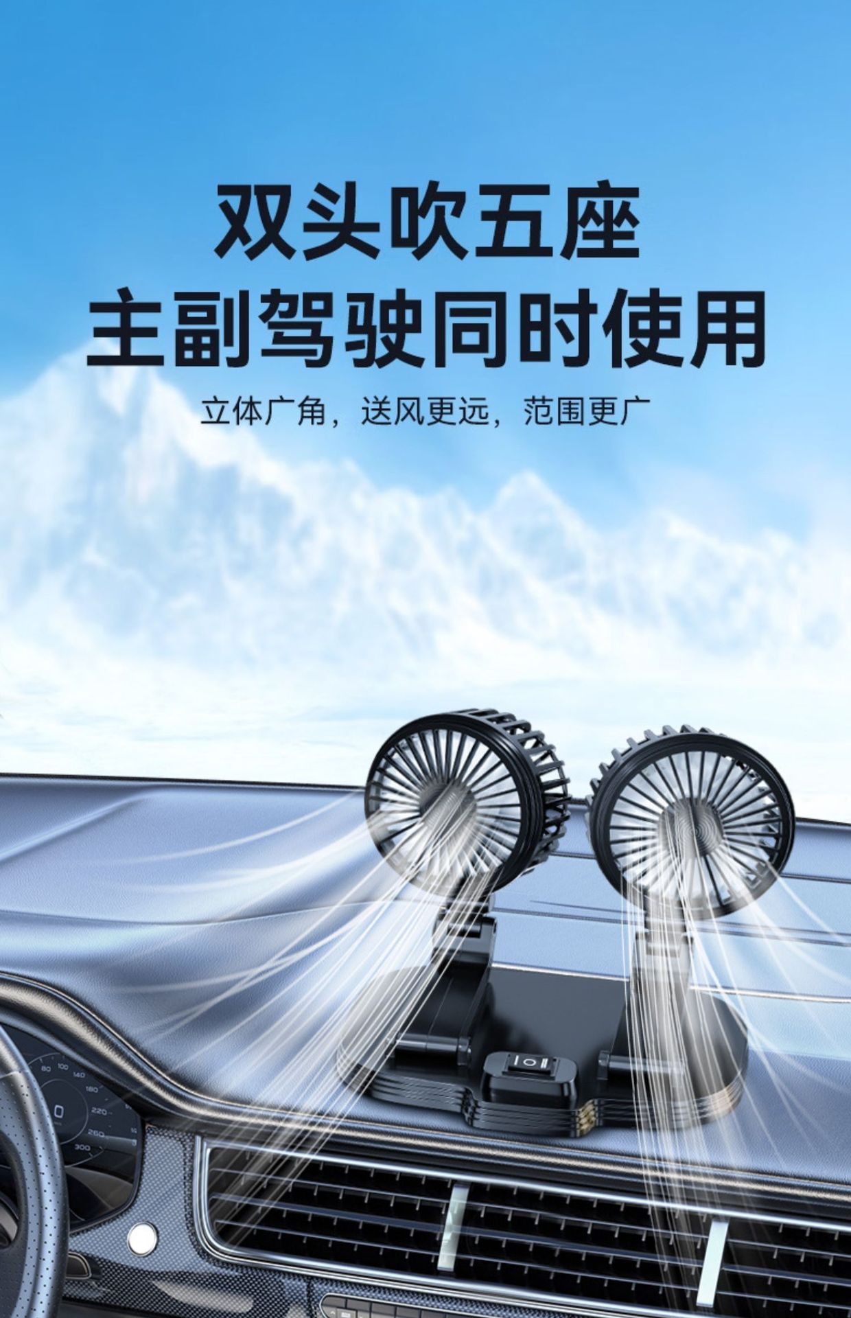 車用風扇大貨車24v伏12v製冷小麵包車雙頭車用強力汽車電風扇usb