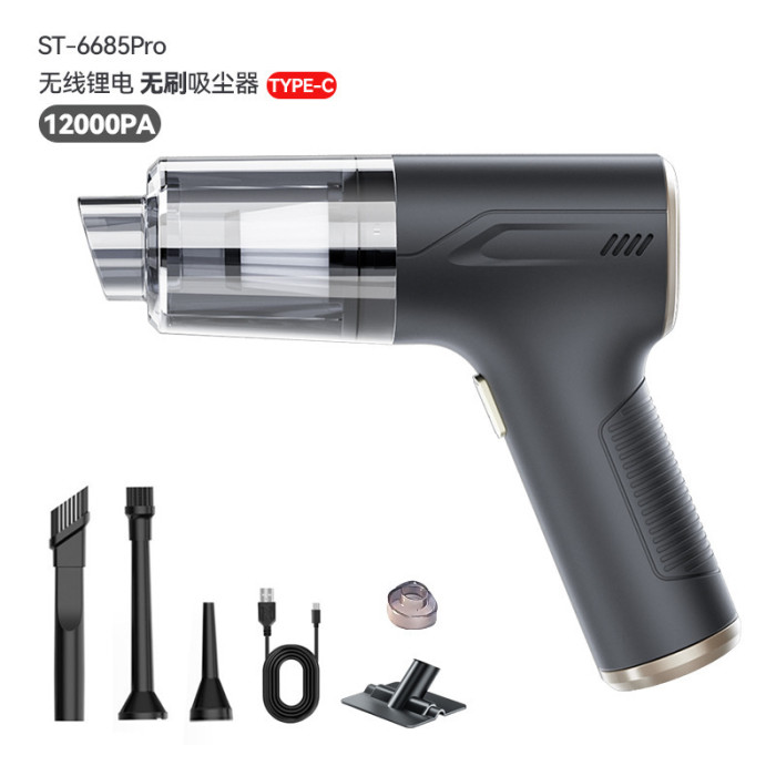 黑色(基礎款*USB充電插口*12000pa*2節*2000mAh吹吸抽三合一吸塵器)