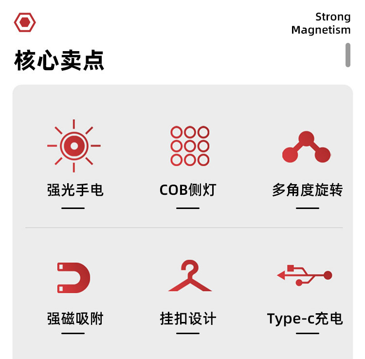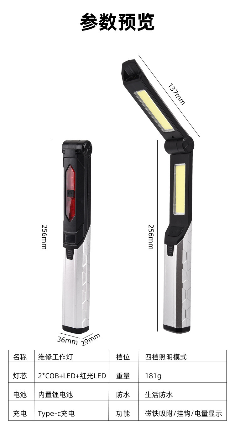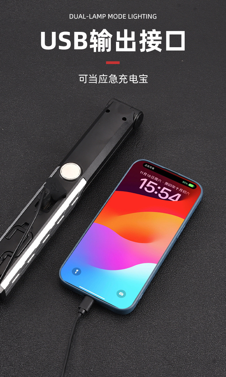 可折曡LED照明工作燈強光手電筒USB可充電防水帶強磁汽修燈應急燈