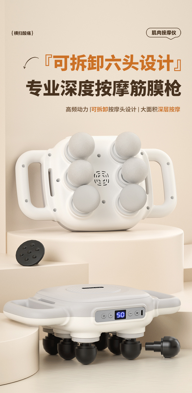 【新升級6頭筋膜槍-標配版】珍珠白【緩解肌肉酸痛‖改善血液循環‖緩解身體疲勞】