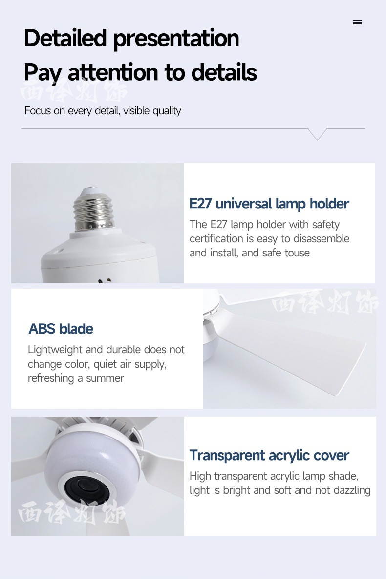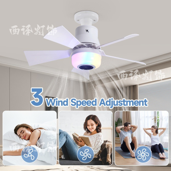 新款RGB藍牙音響風扇燈e27螺口led吊扇燈扇葉可拆卸臥室客廳吸頂