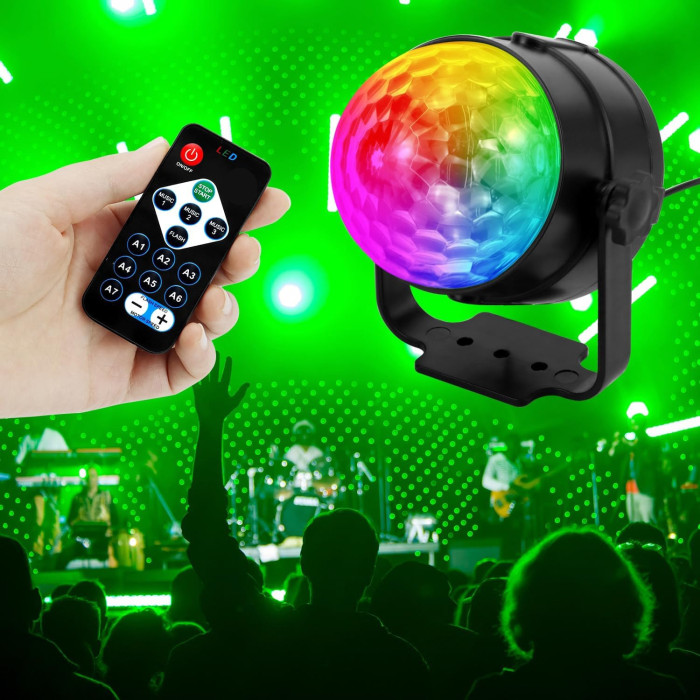 遙控LED小魔球迷你水晶魔球燈電機聲控旋轉舞台燈雷射燈KTV舞台燈
