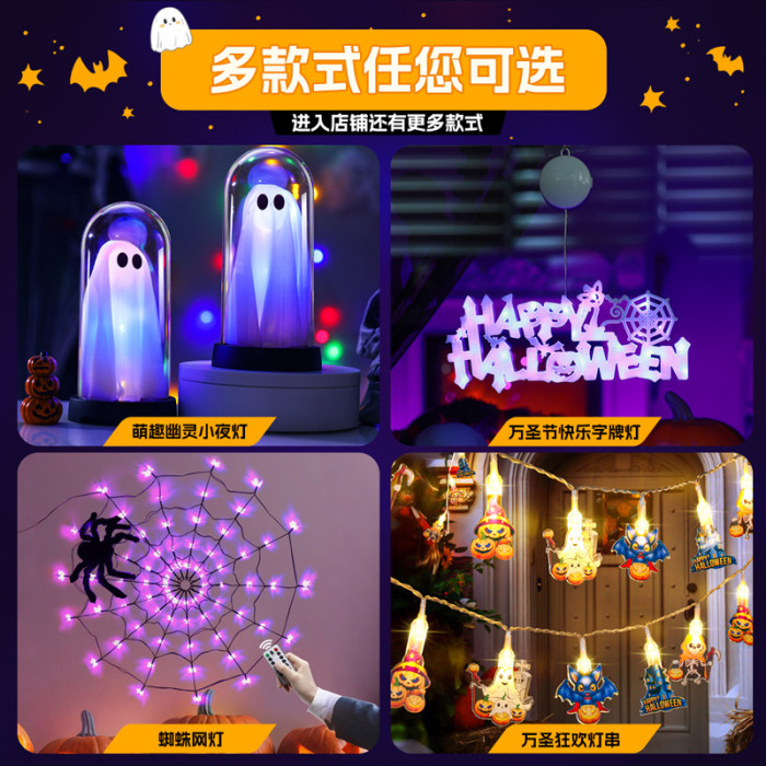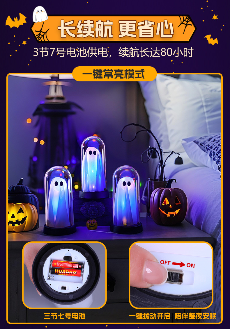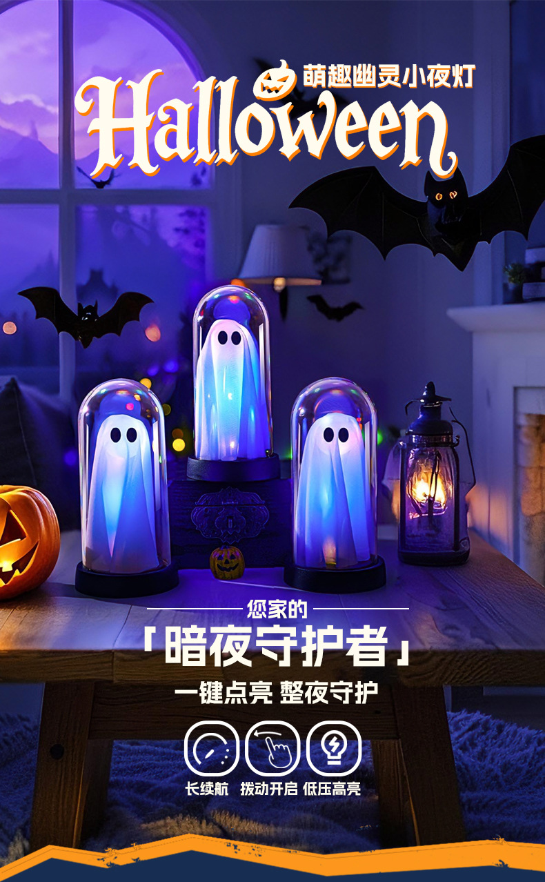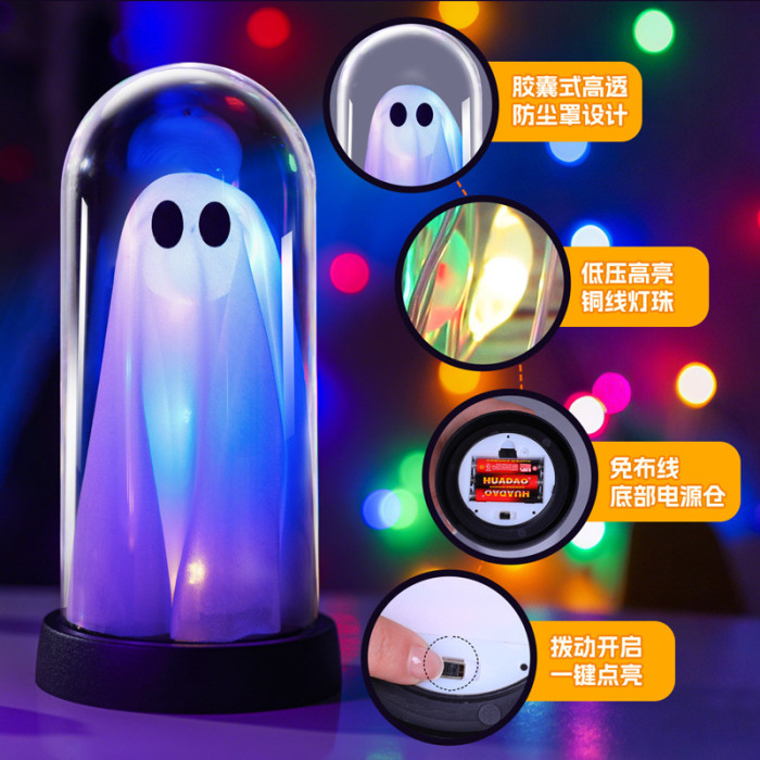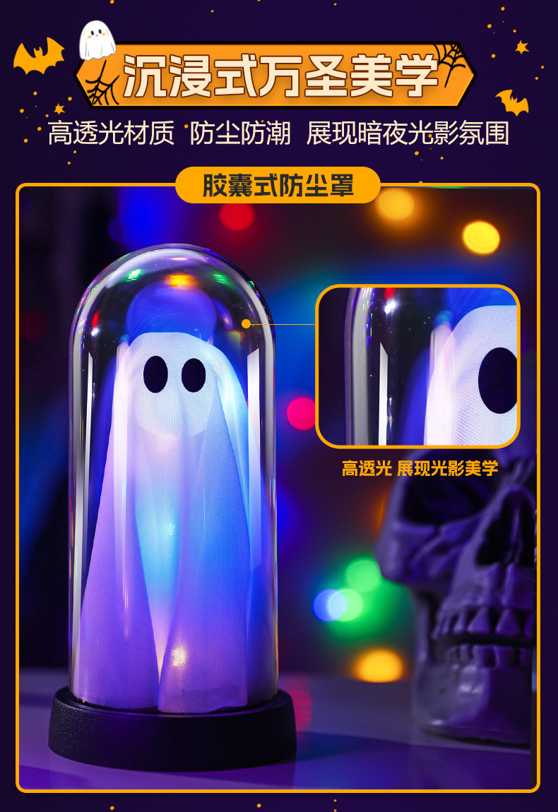發光幽靈小夜燈擺件萬聖節裝扮氛圍led彩燈鬼節主題桌面場景布置