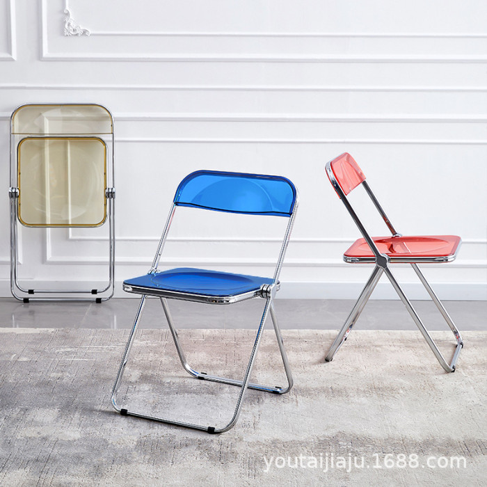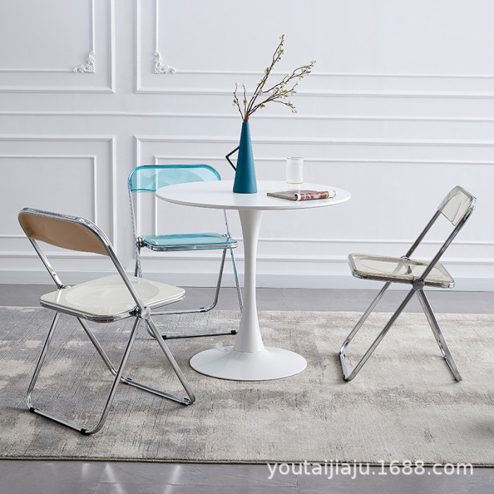 網紅折曡椅亞克力透明椅幽靈餐椅ins塑膠水晶椅服裝拍照洽談椅子