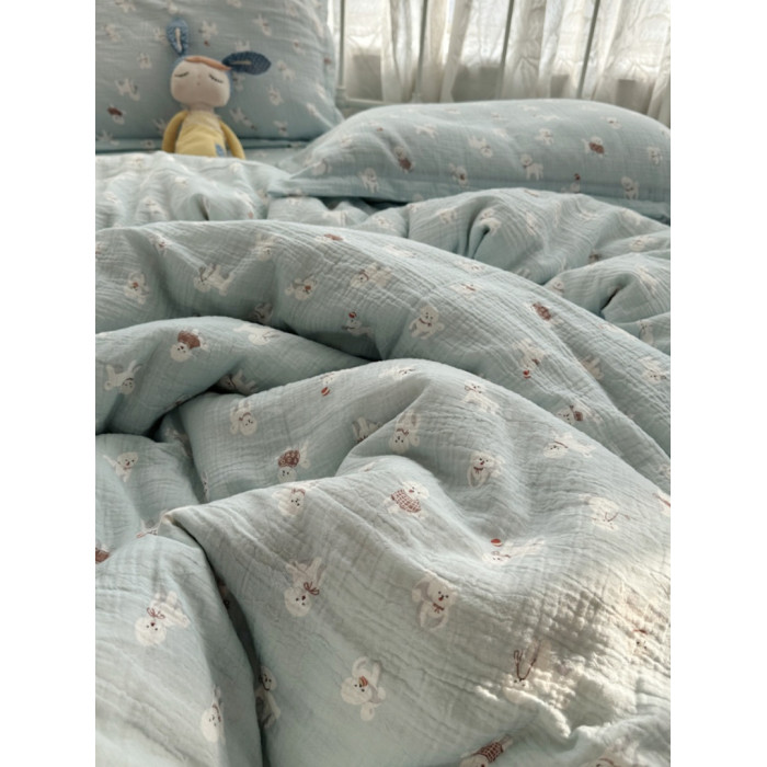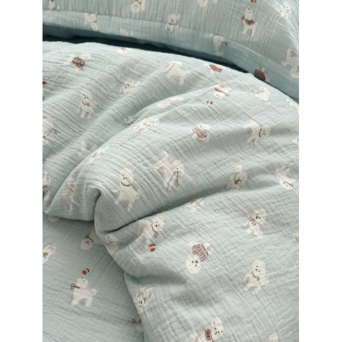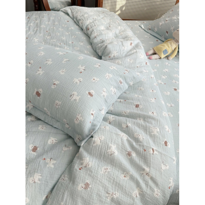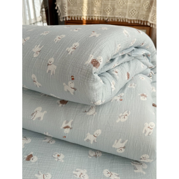 可愛棉花狗!A類母嬰級純棉雙層皺皺紗卡通床單松軟親膚四件套床品