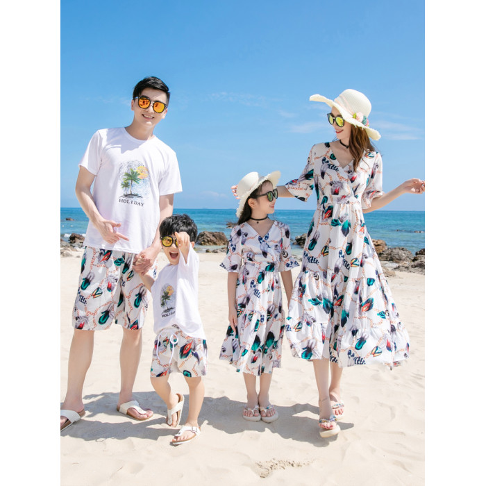 親子裝夏裝全家裝母女裝家庭海邊一家三口四口沙灘裝寬松出遊度假