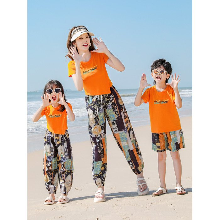 沙灘海邊度假親子裝一家三口四口三亞旅遊套裝2025新款洋氣母女裝