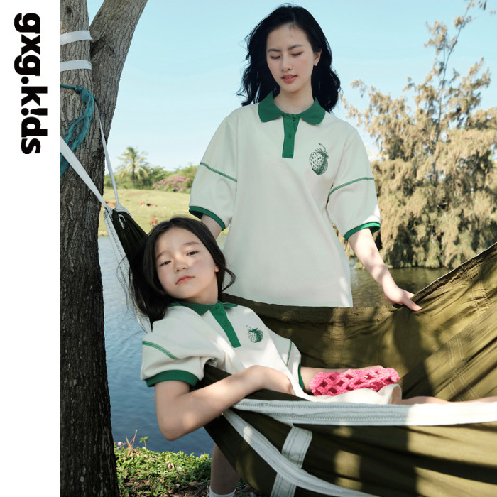 [親子裝]gxgkids童裝兒童T恤連衣裙Polo領25夏母女裝洋氣親子短袖