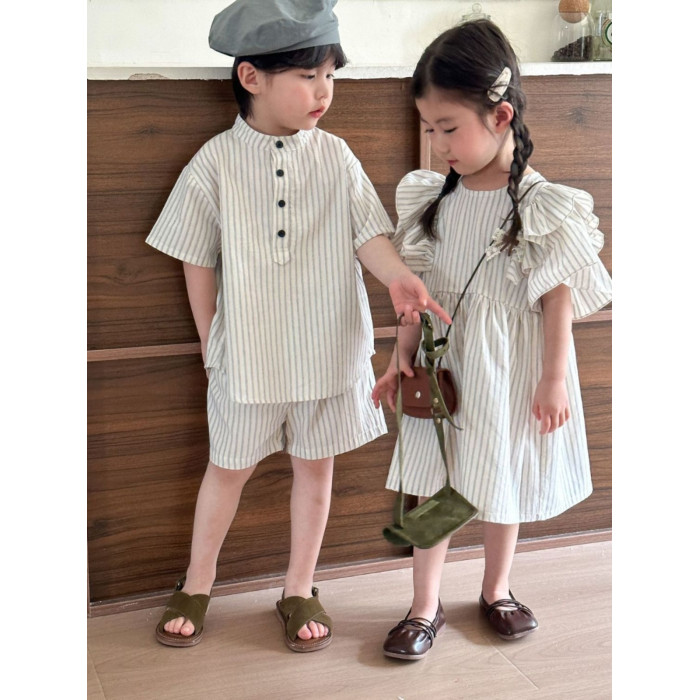 兄妹裝兒童夏裝姐弟裝短袖親子裝連衣裙夏季龍鳳胎純棉襯衫套裝潮
