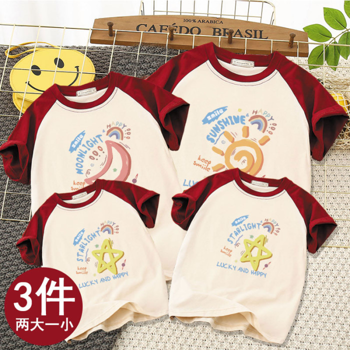 不一樣親子裝母子一家三口四口夏季新款全家裝母女裝純棉短袖T恤