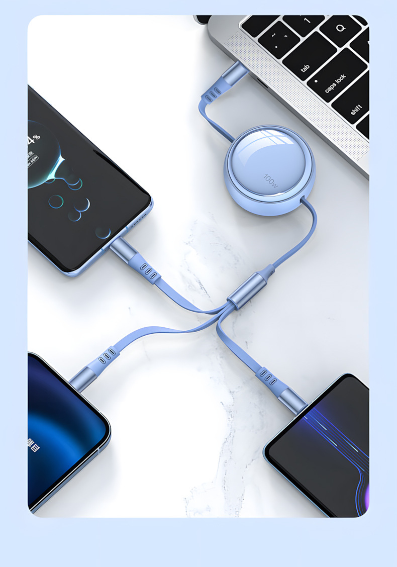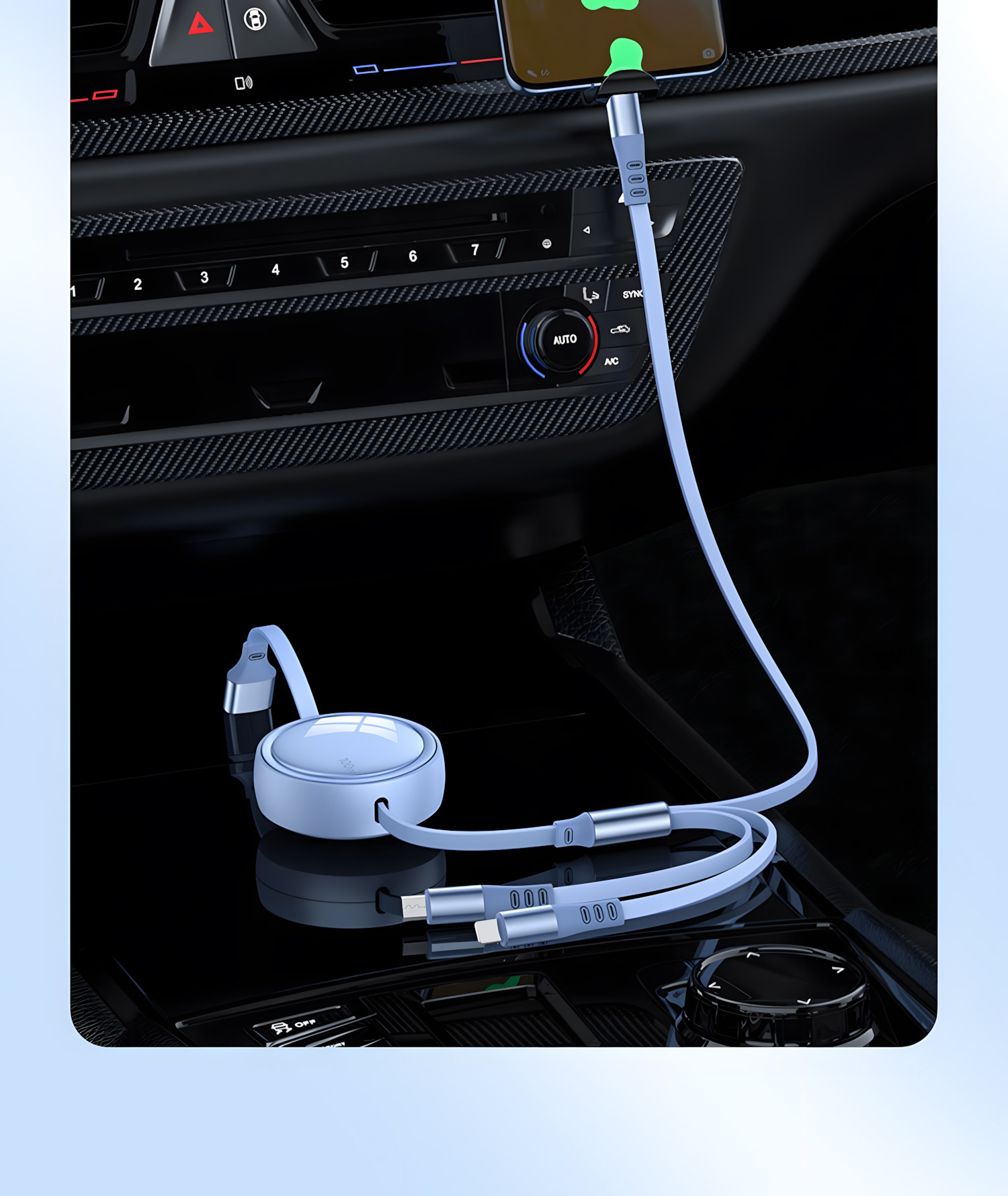車用三合一伸縮數據線適用蘋果華爲安卓手機充電器線一拖三數據線