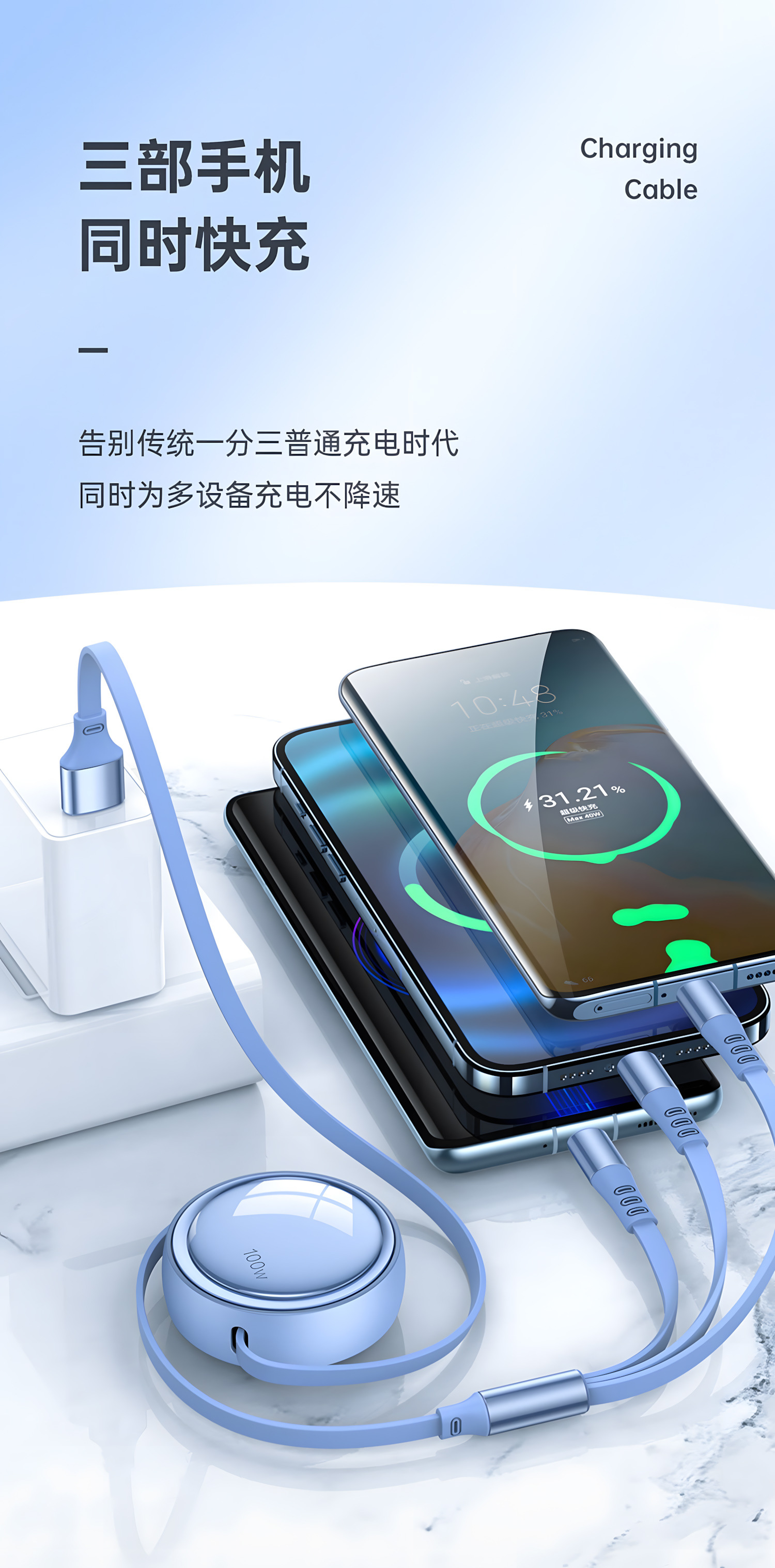 型號 100W三合一快充【泡沫粉】TypeC接口