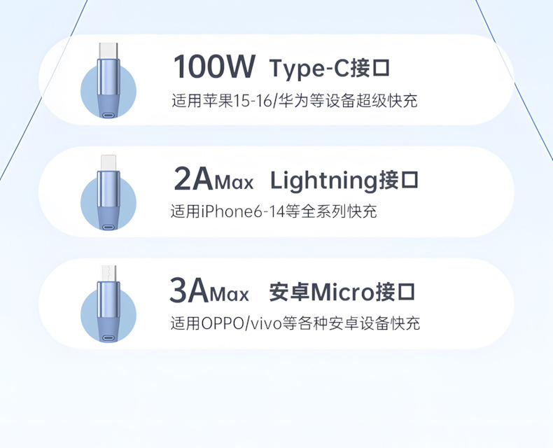 電流 適用蘋果2A(Max)/Type-C6A(Max)/安卓3A(Max])
