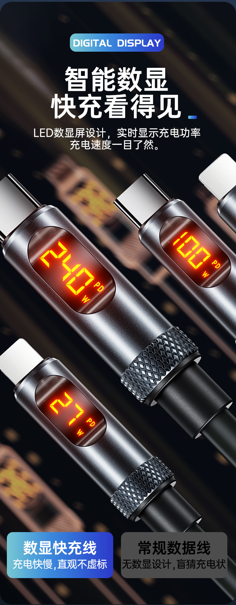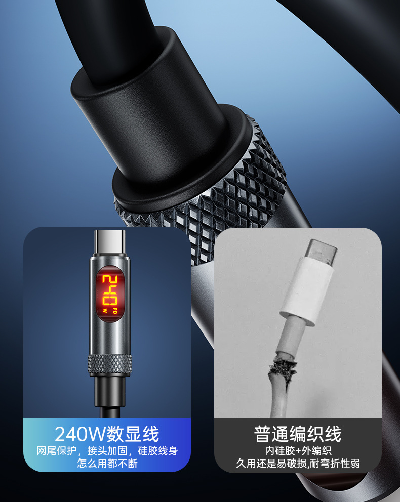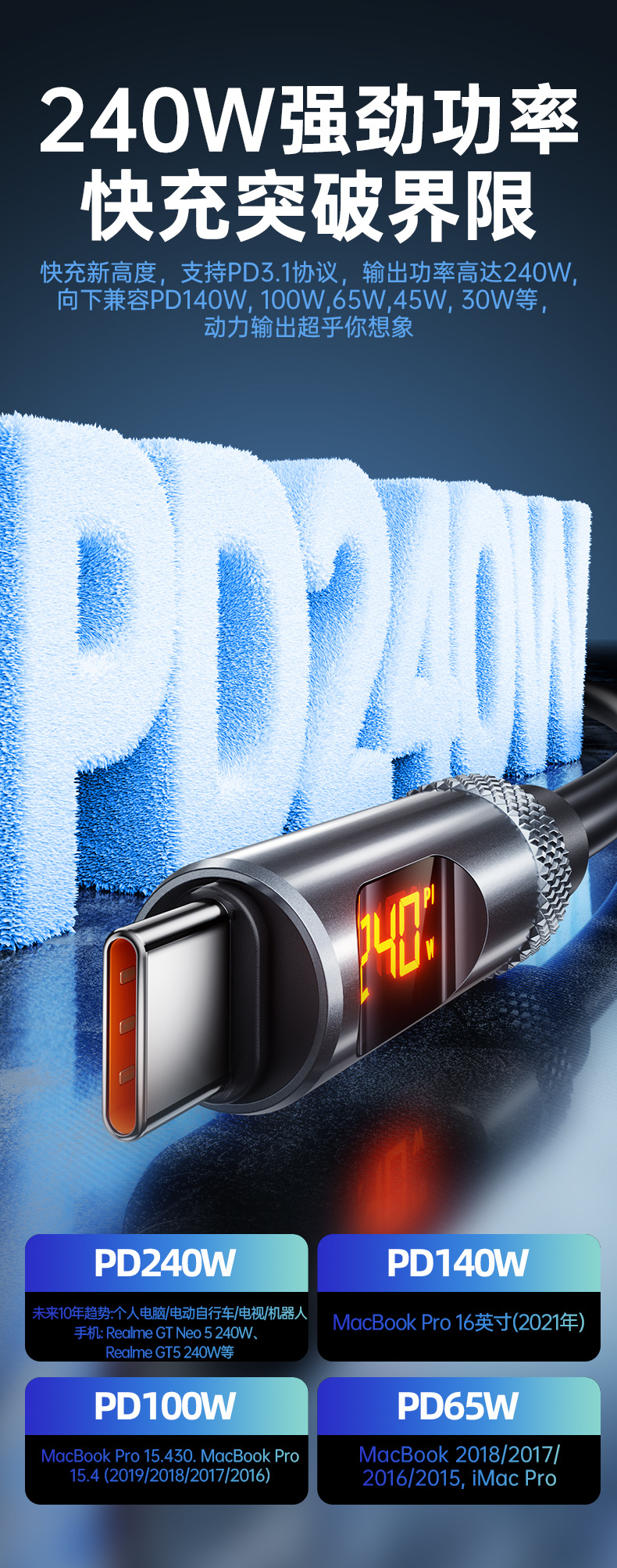 240W超級快充智能數顯6A車用數據線雙TC適用蘋果16/15充電線