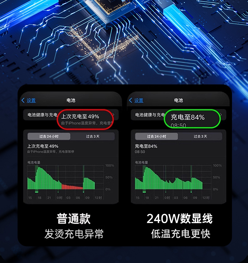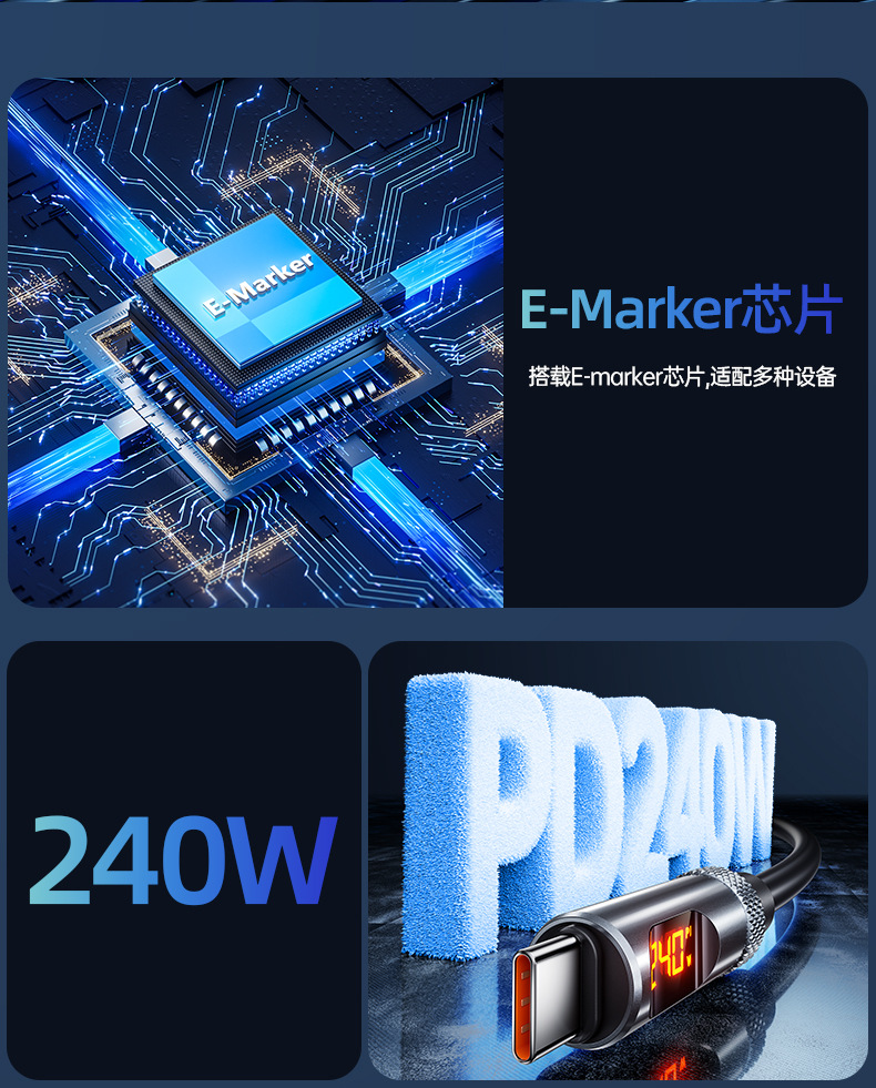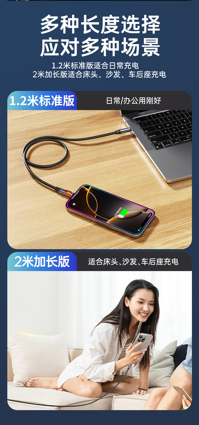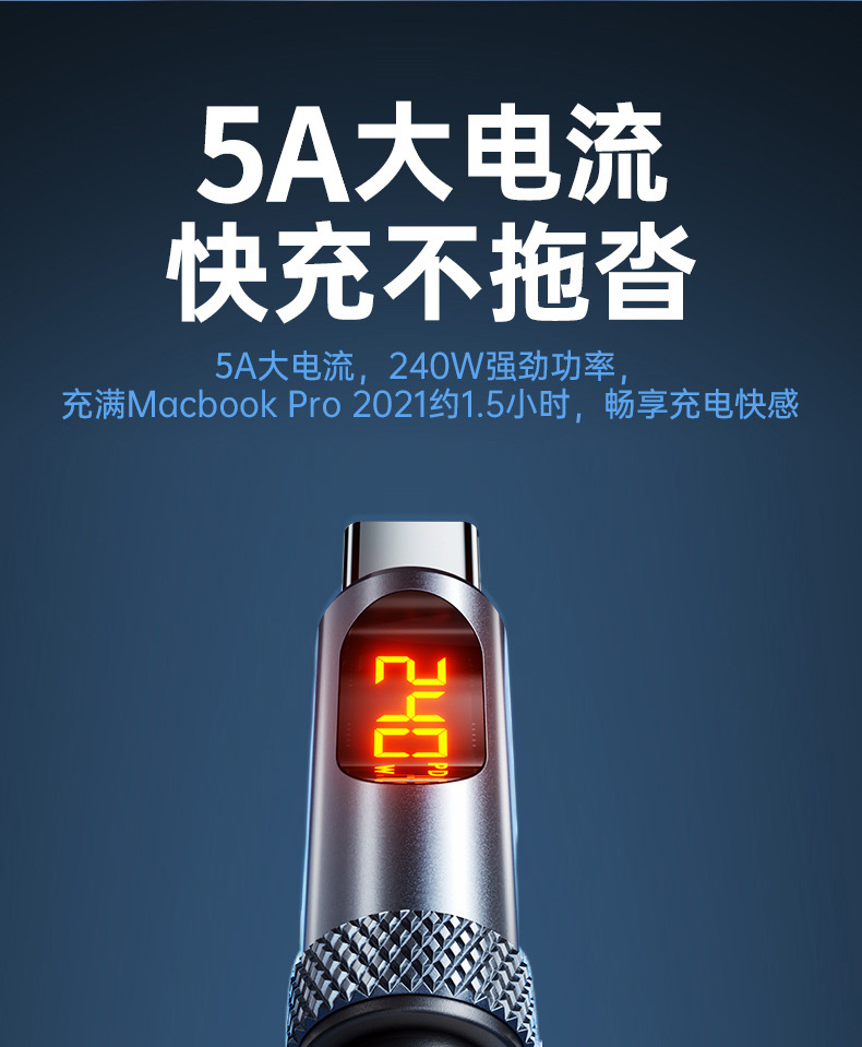 240W超級快充智能數顯6A車用數據線雙TC適用蘋果16/15充電線