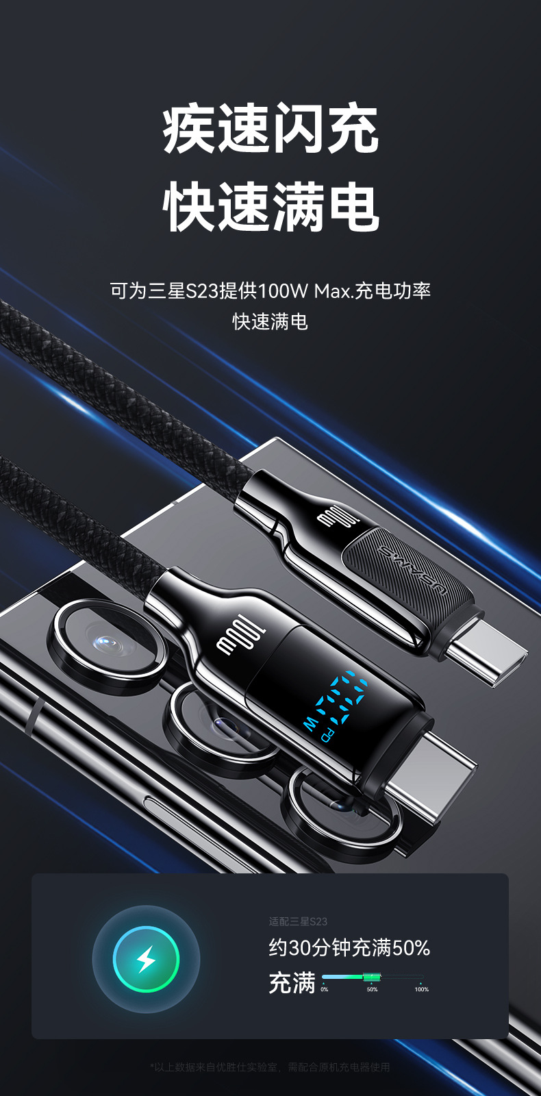 優勝仕數據線PD100W雙C口數顯快充線適用蘋果16 15華爲安卓充電線