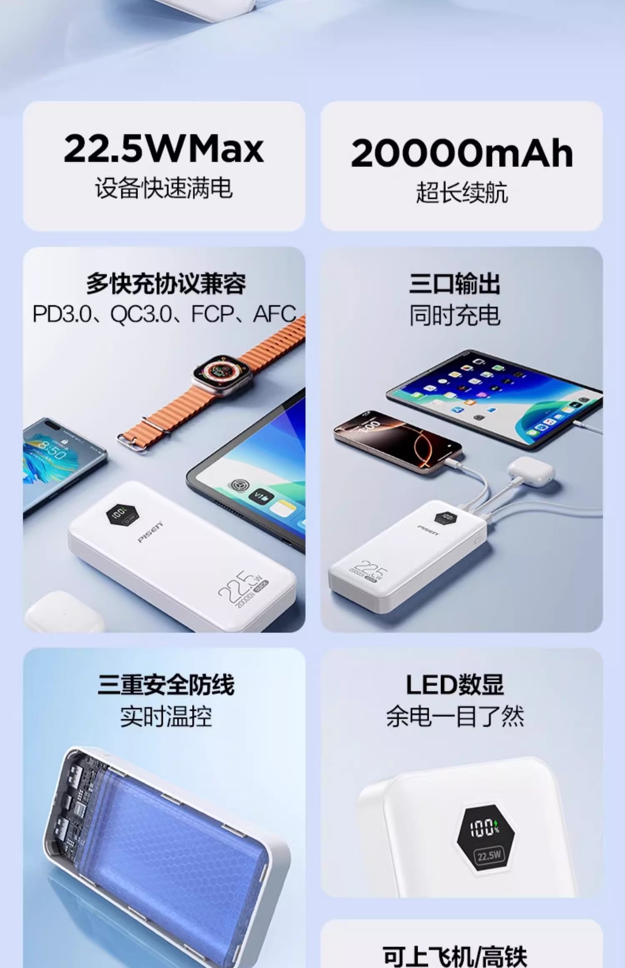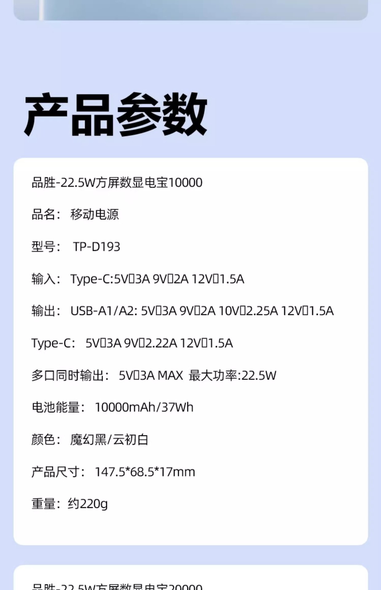 電源容量 | 【黑色】數顯版-22.5W屏顯20000毫安*D184 |