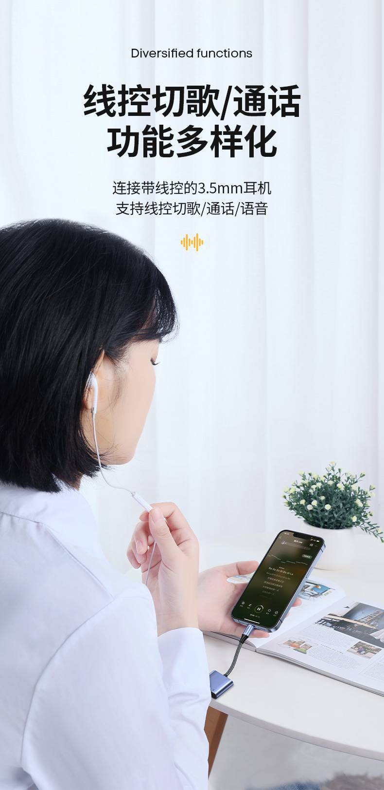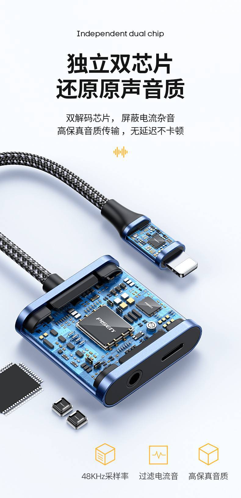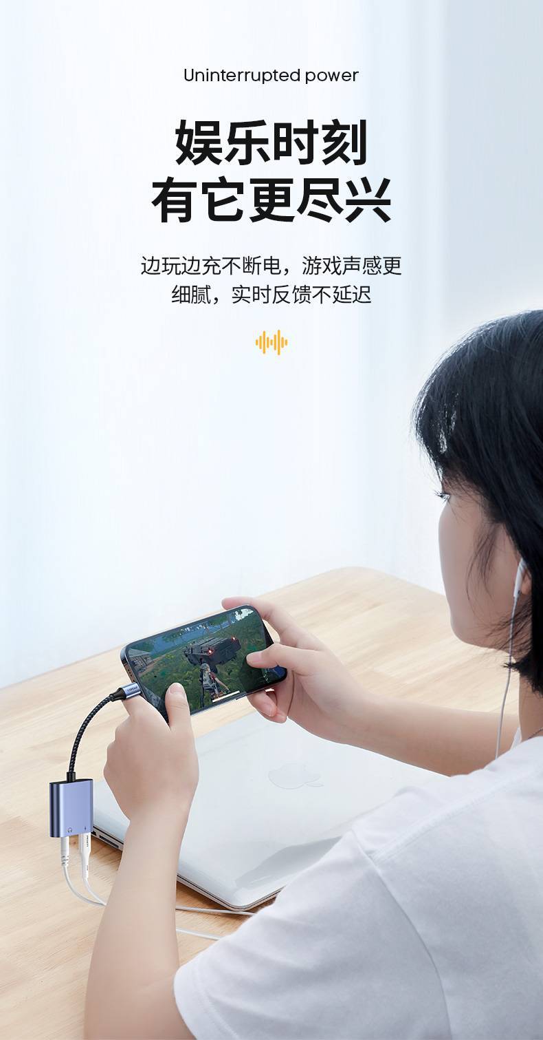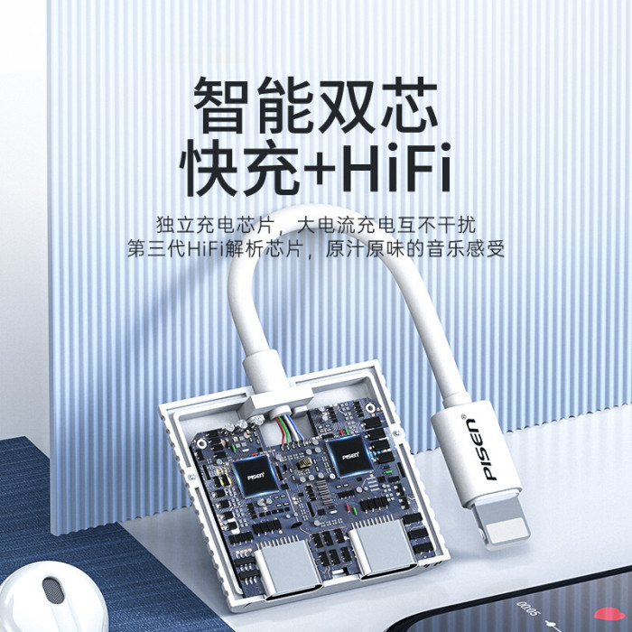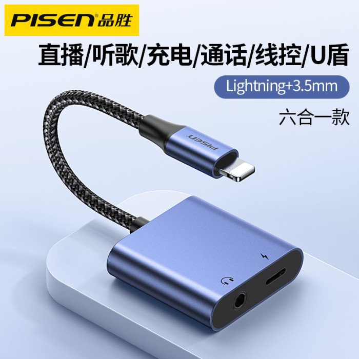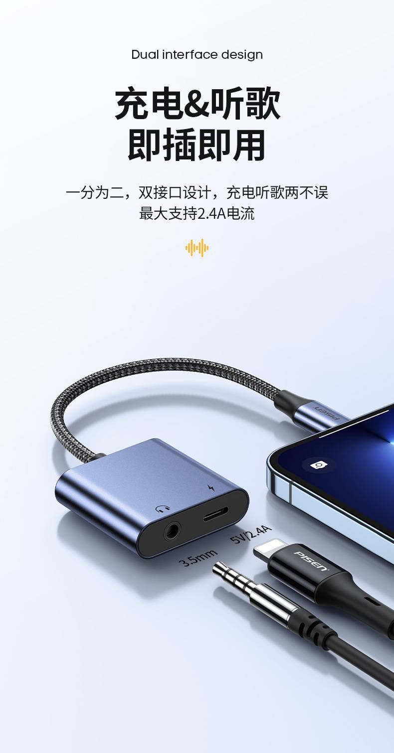 品勝耳機轉接頭適用蘋果充電聽歌13手機聲卡14p線x二合一轉接頭