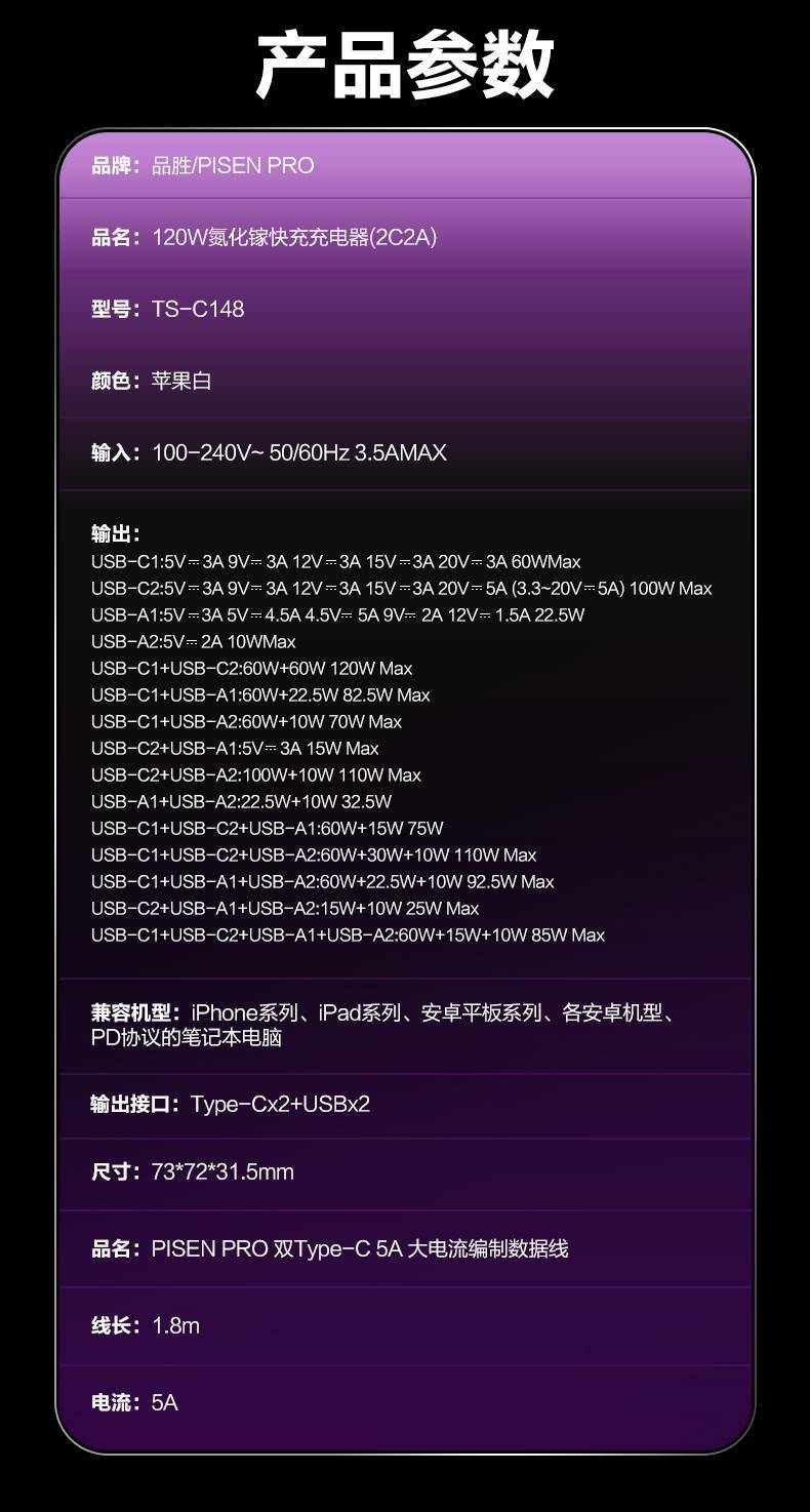 PISEN | 120W氮化鎵快充充電器套裝 |