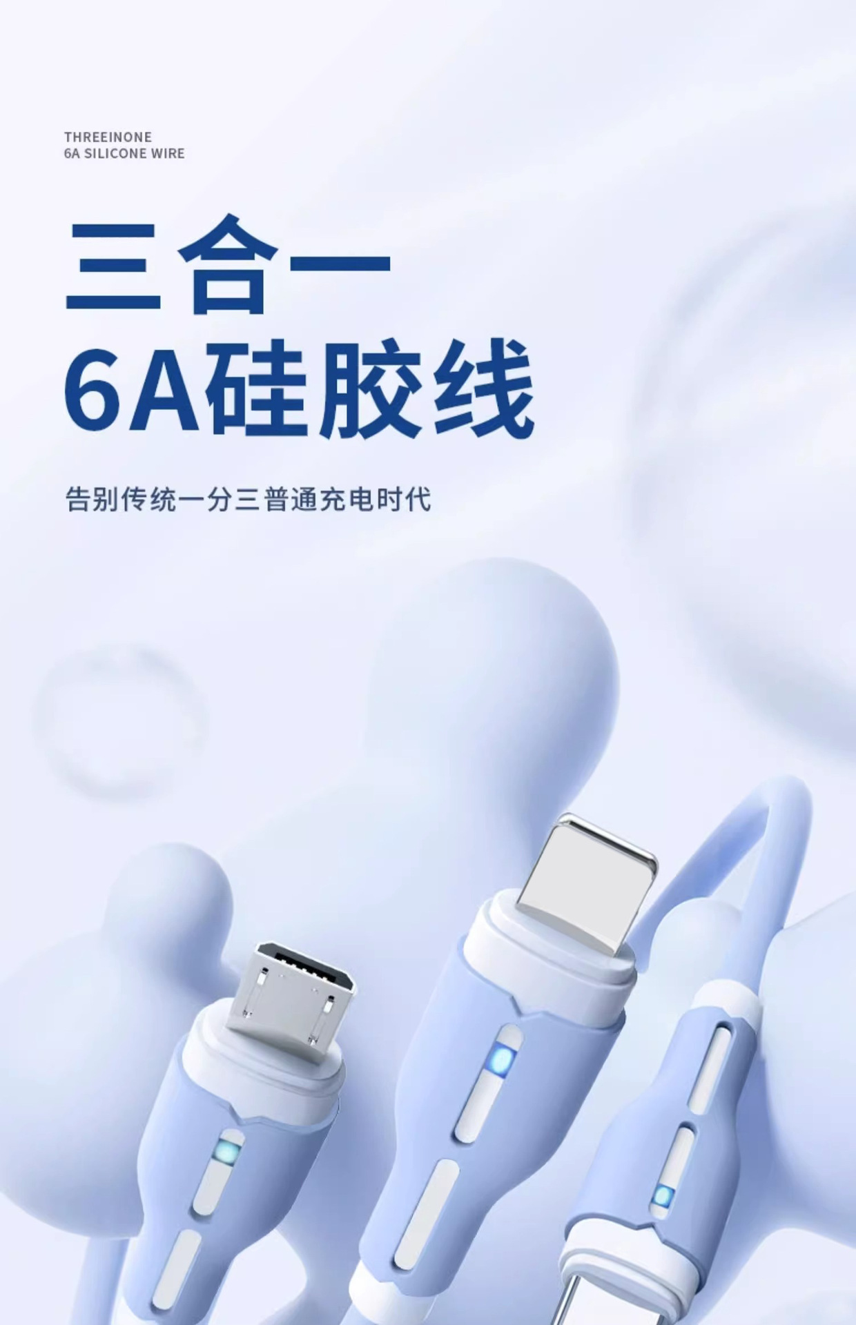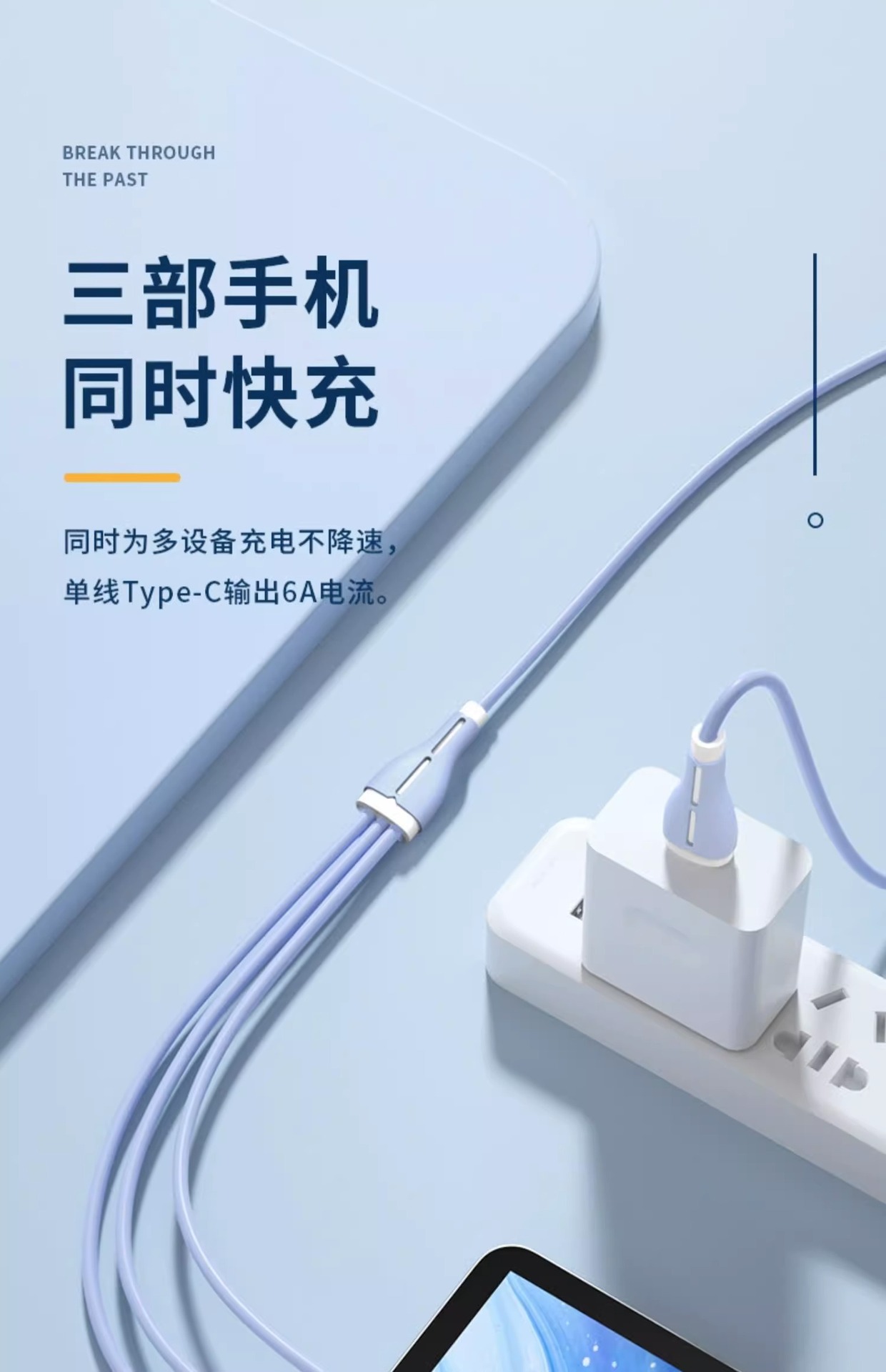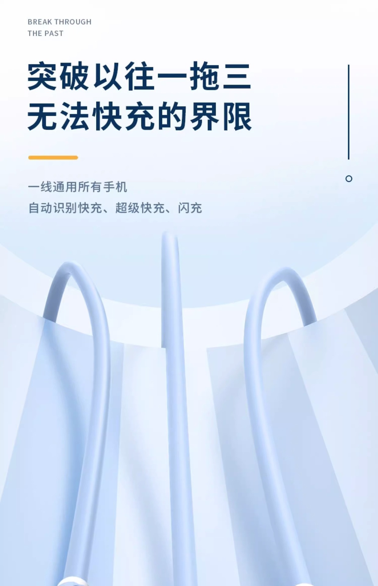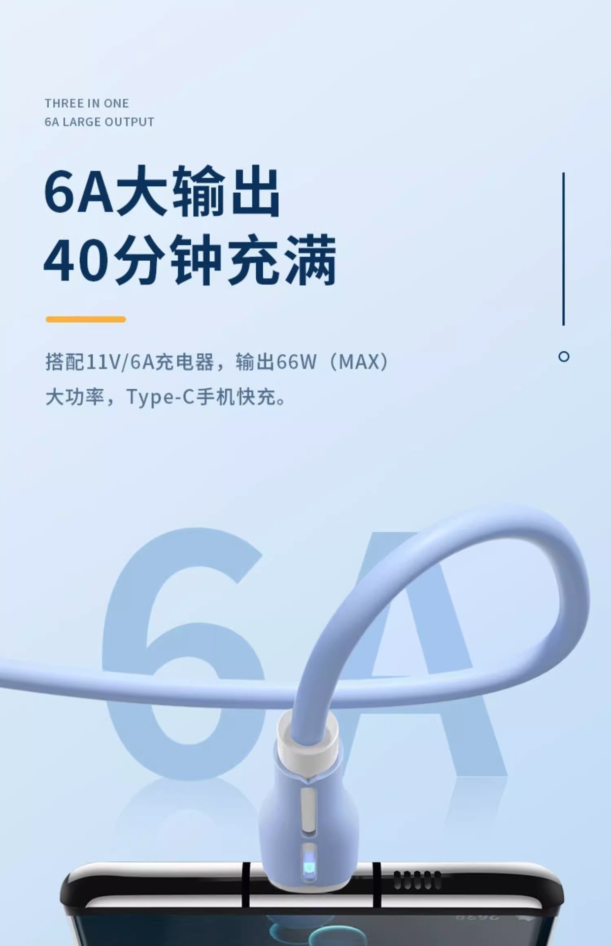 100W一拖三快充數據線適用蘋果華爲安卓手機充電套裝車用加長TC