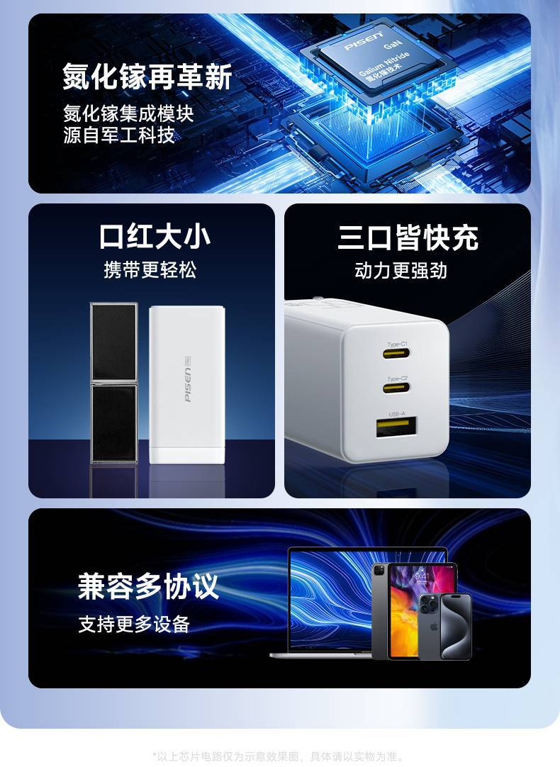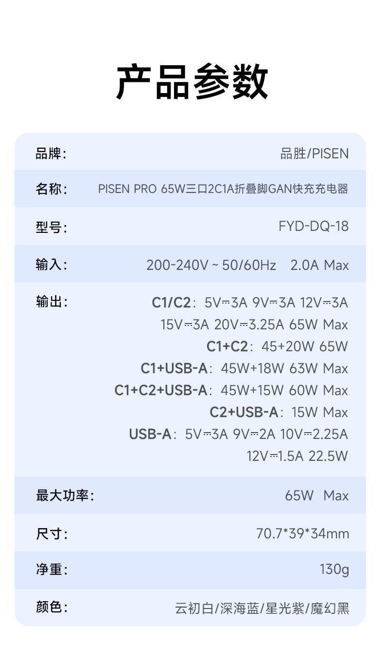 品勝65W氮化鎵充電器頭適用蘋果15promax快充頭GaN筆記型電腦macb