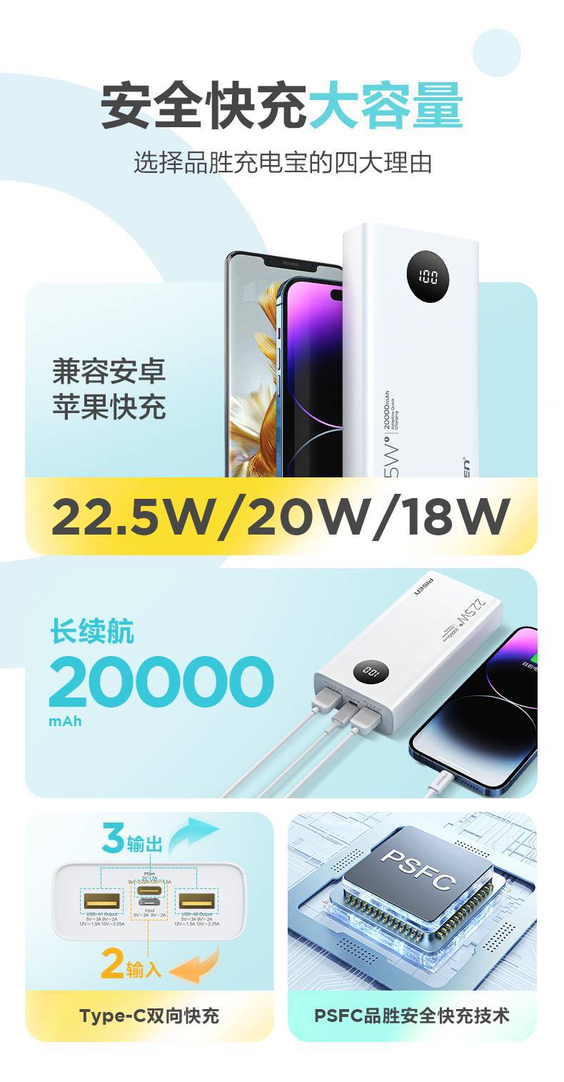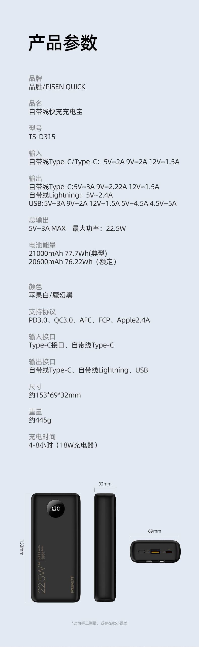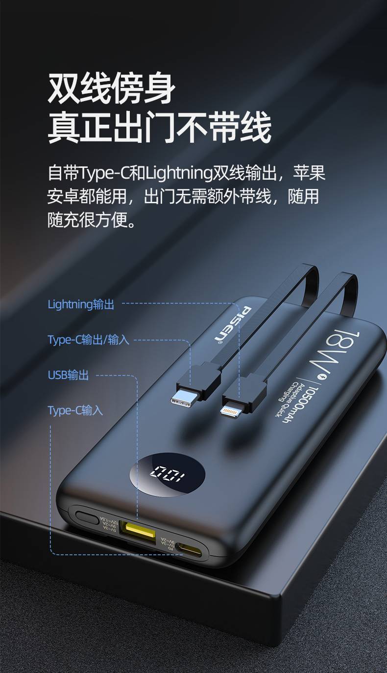 電源容量 | 22.5W 自帶雙線 10500 【魔幻黑】 |