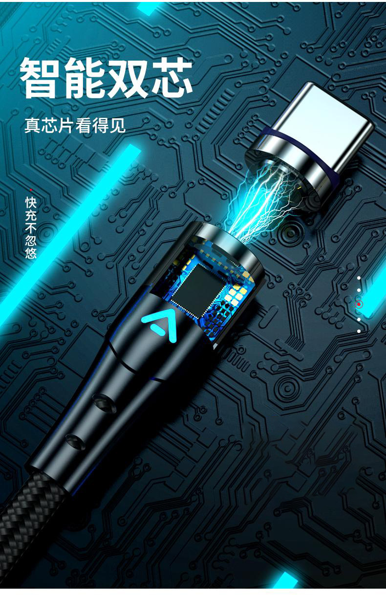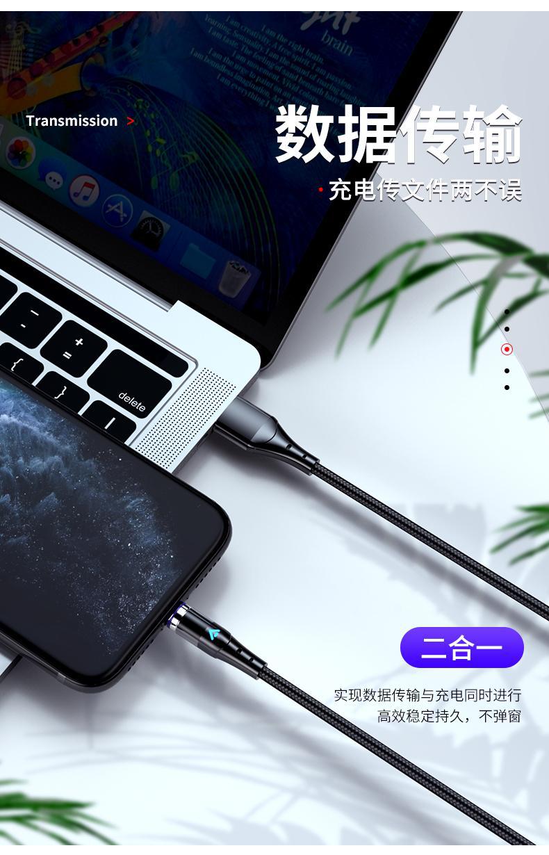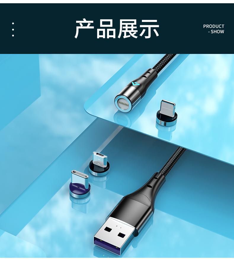 5A超級快充磁吸數據線三合一充電線強磁力適用於華爲蘋果安卓手機