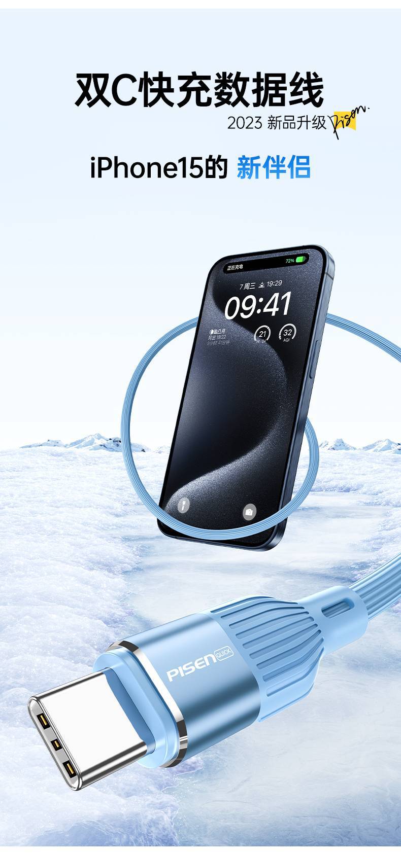 品勝iphone15pro充電器線鋁殼雙頭typec數據線適用蘋果華爲手機快