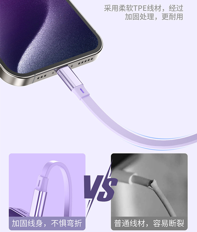 100W伸縮手機數據線適用於蘋果iPhone15伸縮單頭充電線手機快充