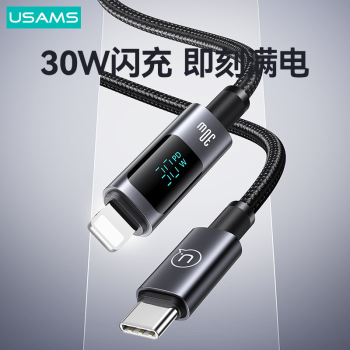 USAMS華爲數顯手機充電線100Wpd數據線30W適用蘋果數據線TYPEC66W