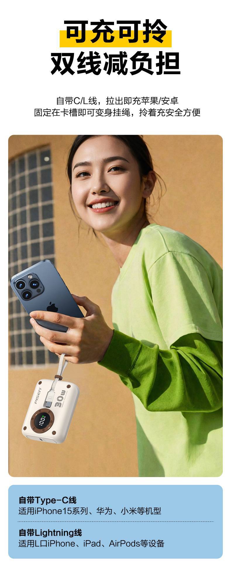 顔色 | 薄荷綠30W迷你帶雙線*帶手提 |