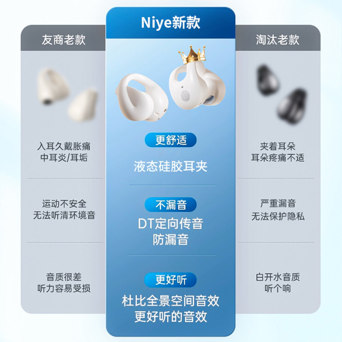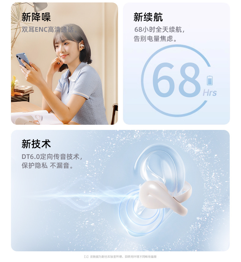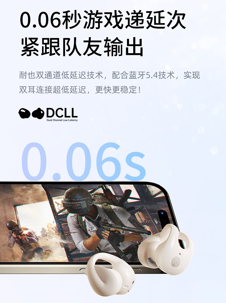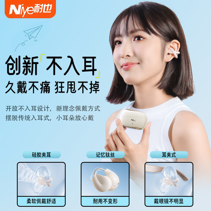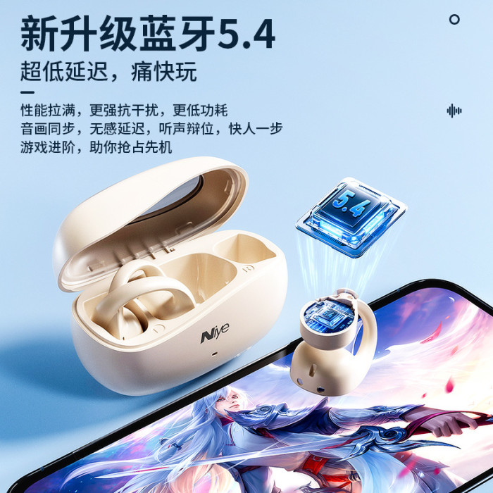 耐也新款TWS耳夾式運動智能降噪超長續航運動5.4藍牙耳機